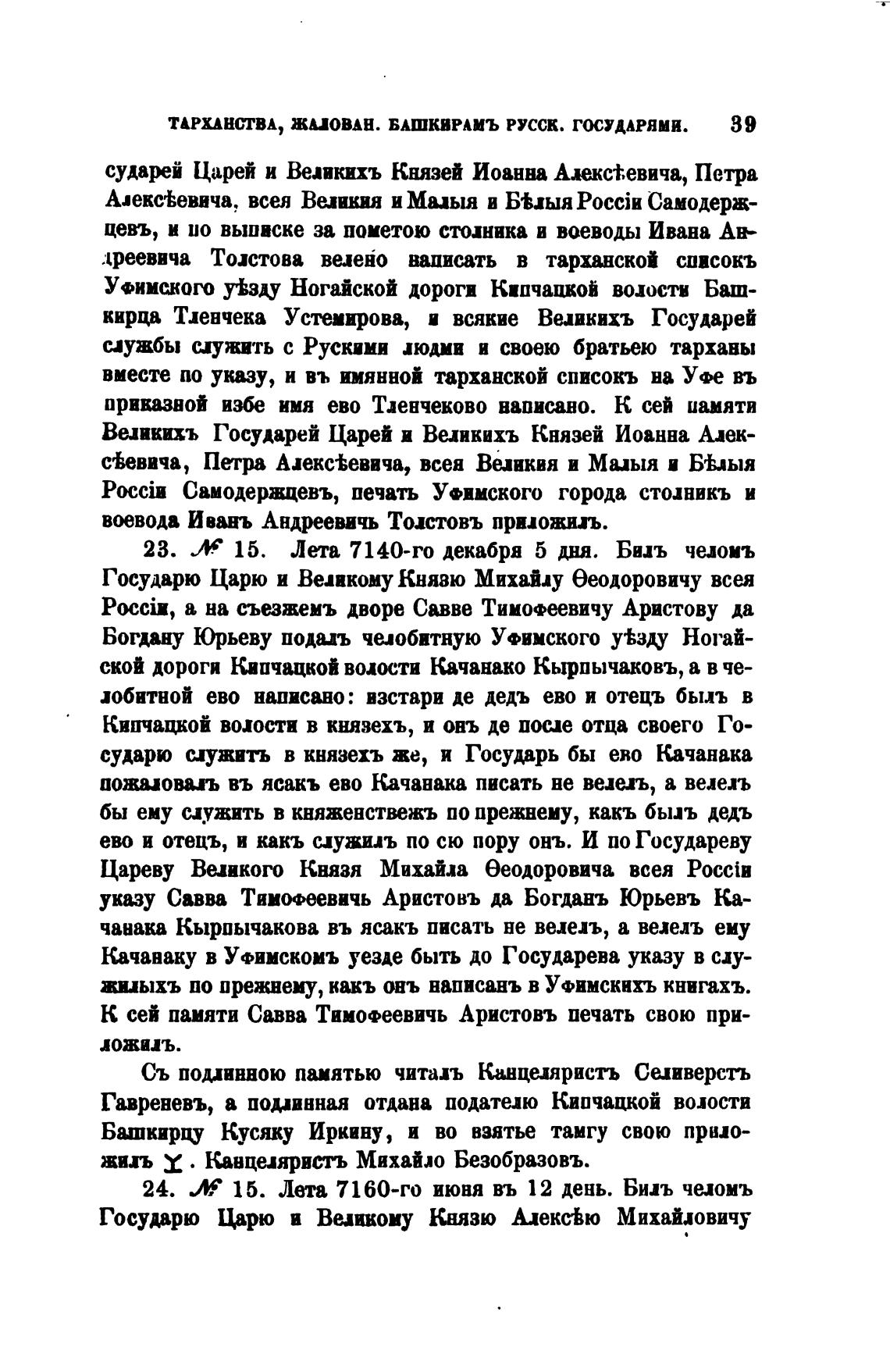 ТАРХАНСТВА, ЖИОВАН. БАШКИРАМЪ РУССК. ГОСУДАРЯМИ.