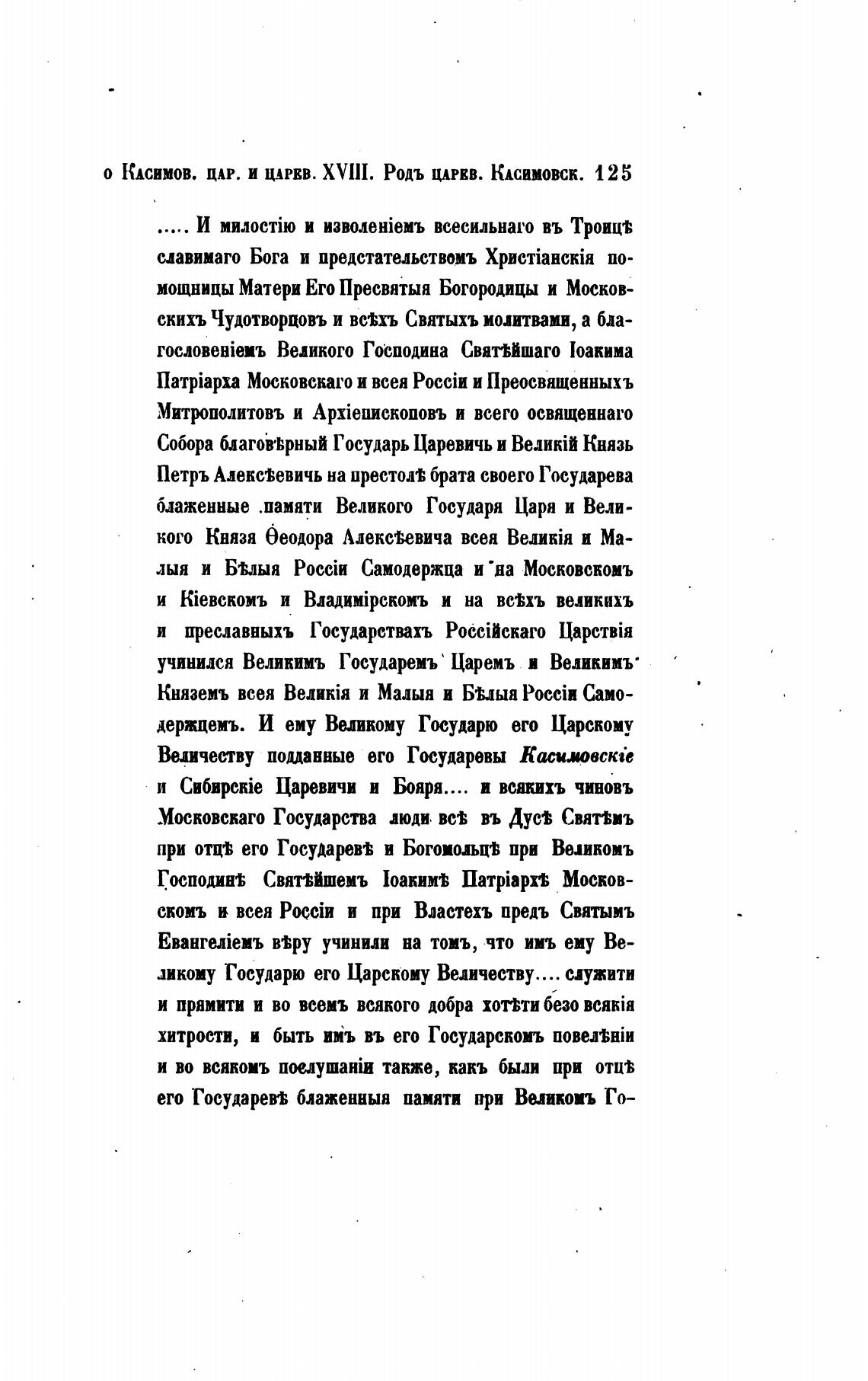 о КАсимов. ЦАР. и ЦАРЕВ. XVllI. Родь ЦАРЕВ. Кжсимовск. 125