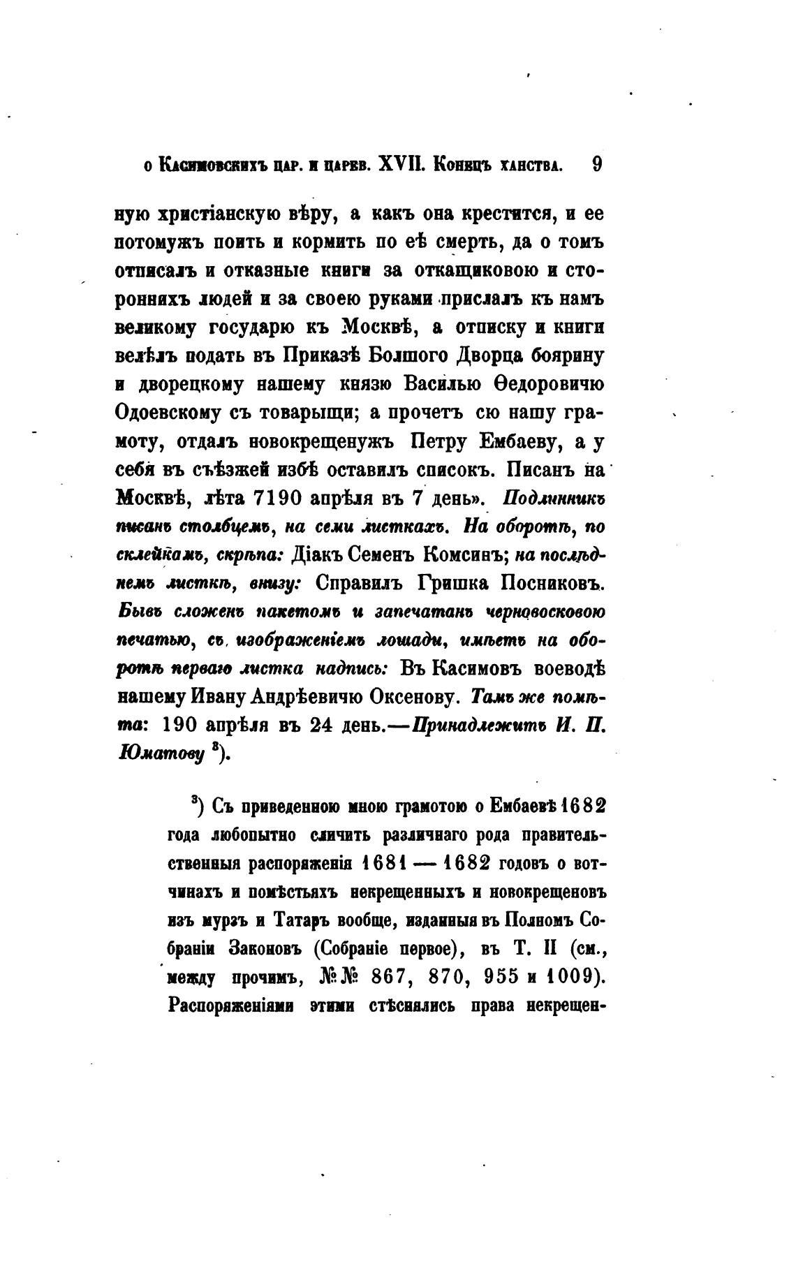 3) Съ приведенною мною грамотою о Ембаевт 1682