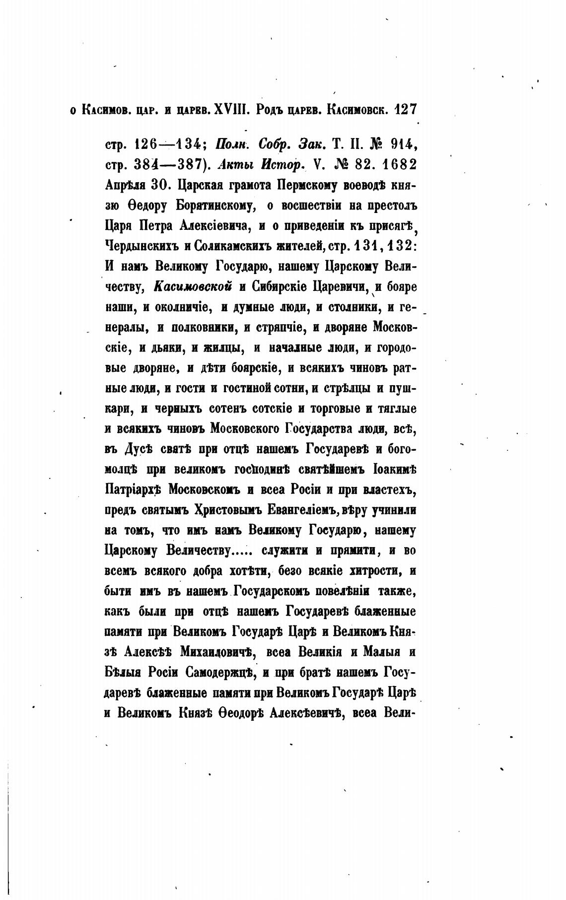 О КАСИМОВ. щр. И ЦАРЕВ. XVllI. Родь ЦАРЕВ. КАСИМОВСК. 127