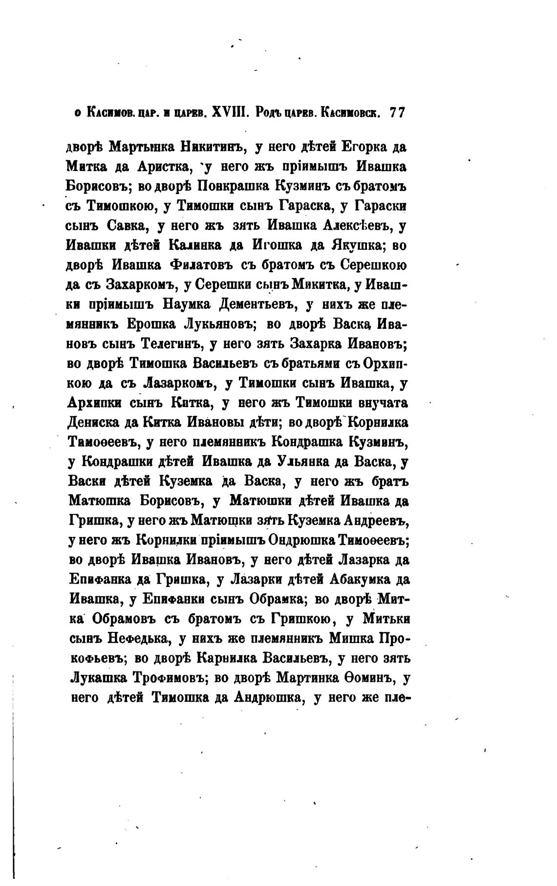 о Юсииов. дар. и ЦАРЕВ. XVIII. Рол ЦАРВВ. Касимовск. 77