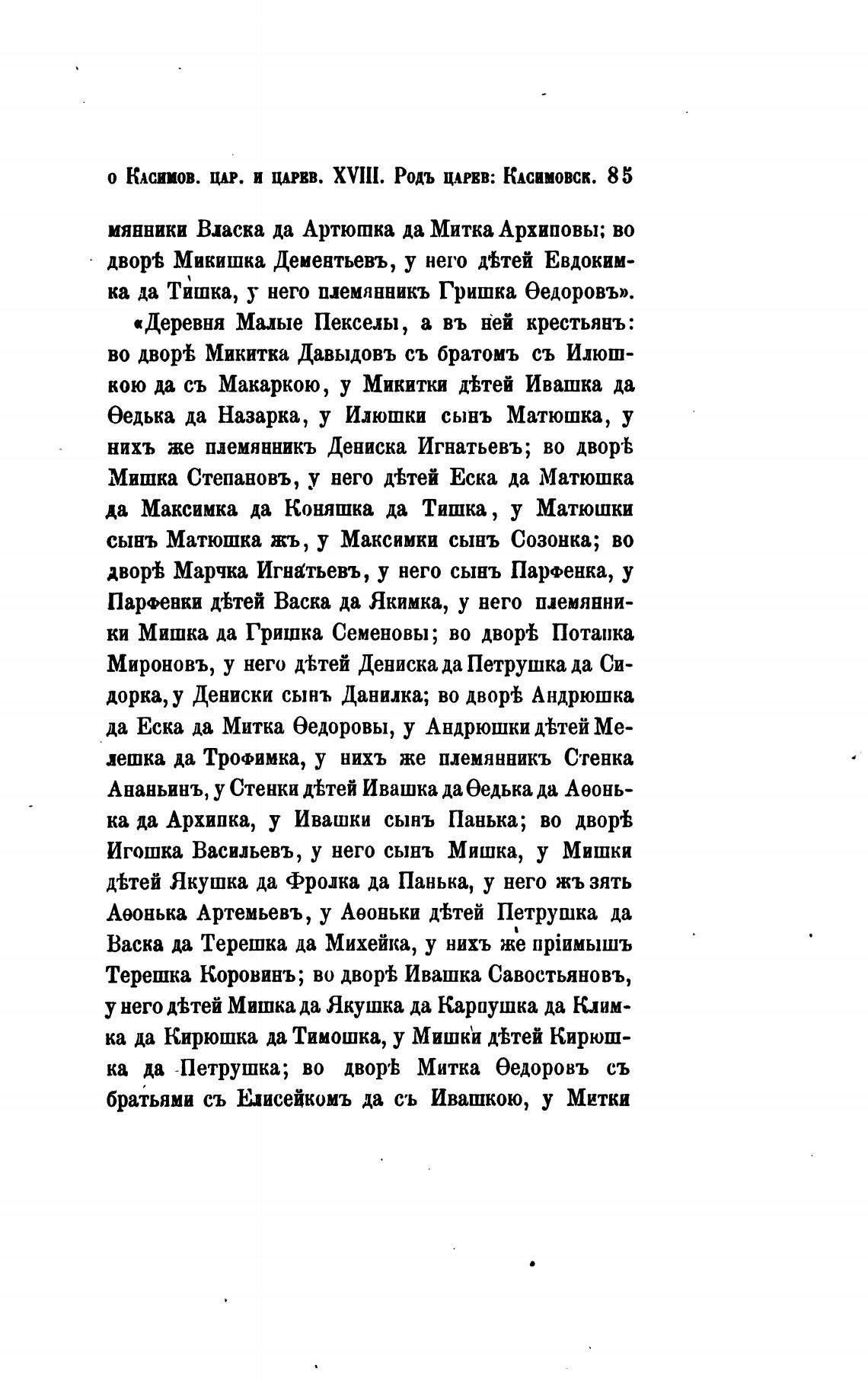 о Юсиыв. ЦАР. и ЦАРЕВ. XVIII. Родь ЦАРЕВ: КАсамовск. 85