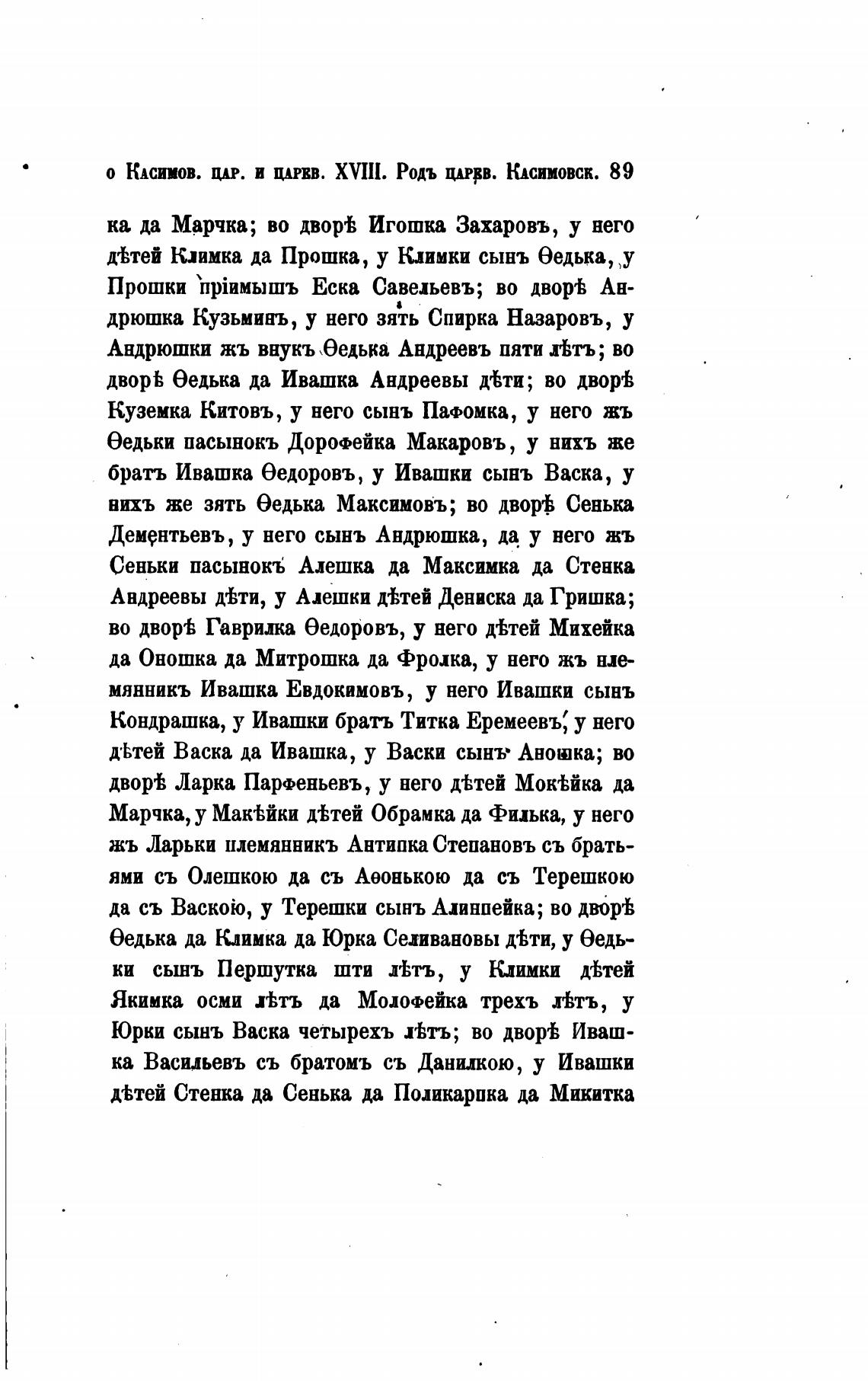 о Юсимов. ЦАР. и ЦАРЕВ. XVIll. Родь ЦРУ. Юсимовск. 89