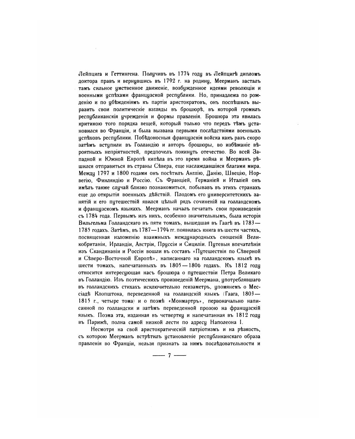 и французскомъ языкахъ. Меерманъ началь печатать свои
