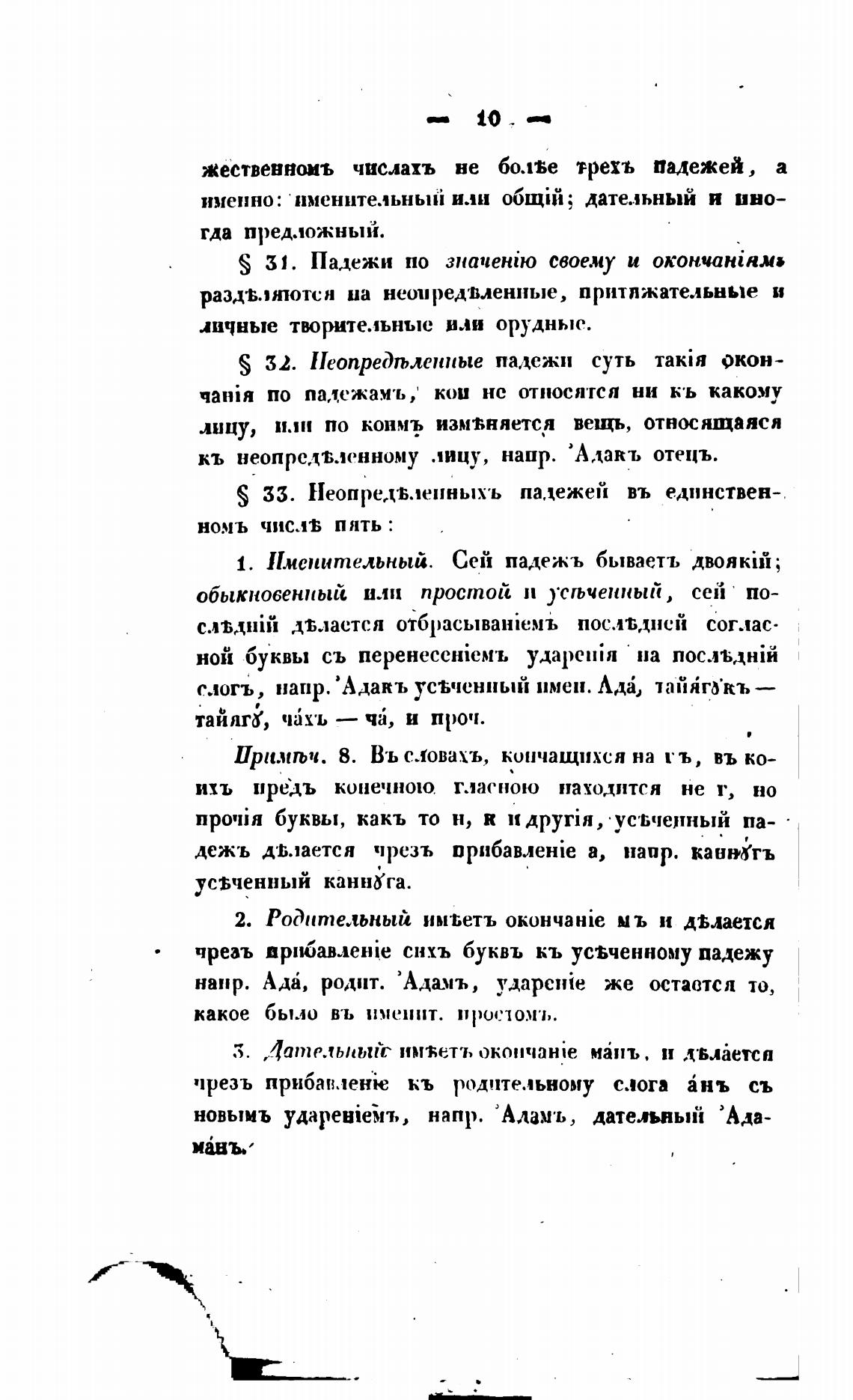 S 33. Неопред•Бленныхъ падежей въ единствен-