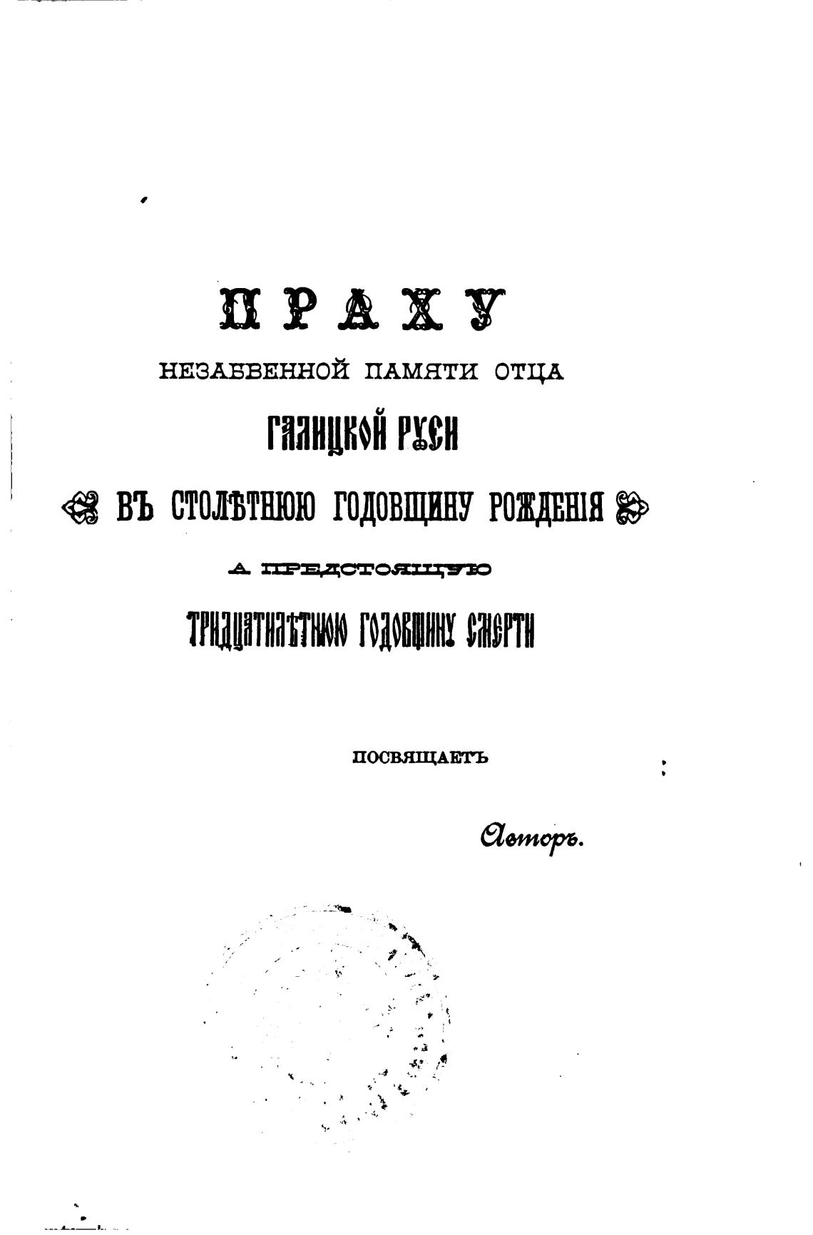 ВЪ СТОЛЉТШОЮ ГОДОВЩИНУ РОЖДВШЯ