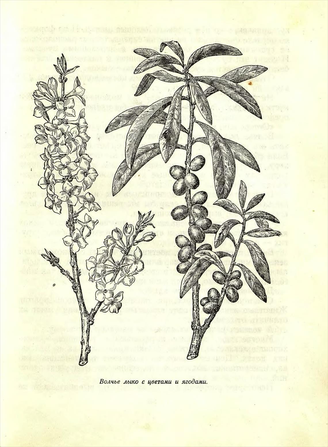 Волчье лыко с цветами и ягодами.