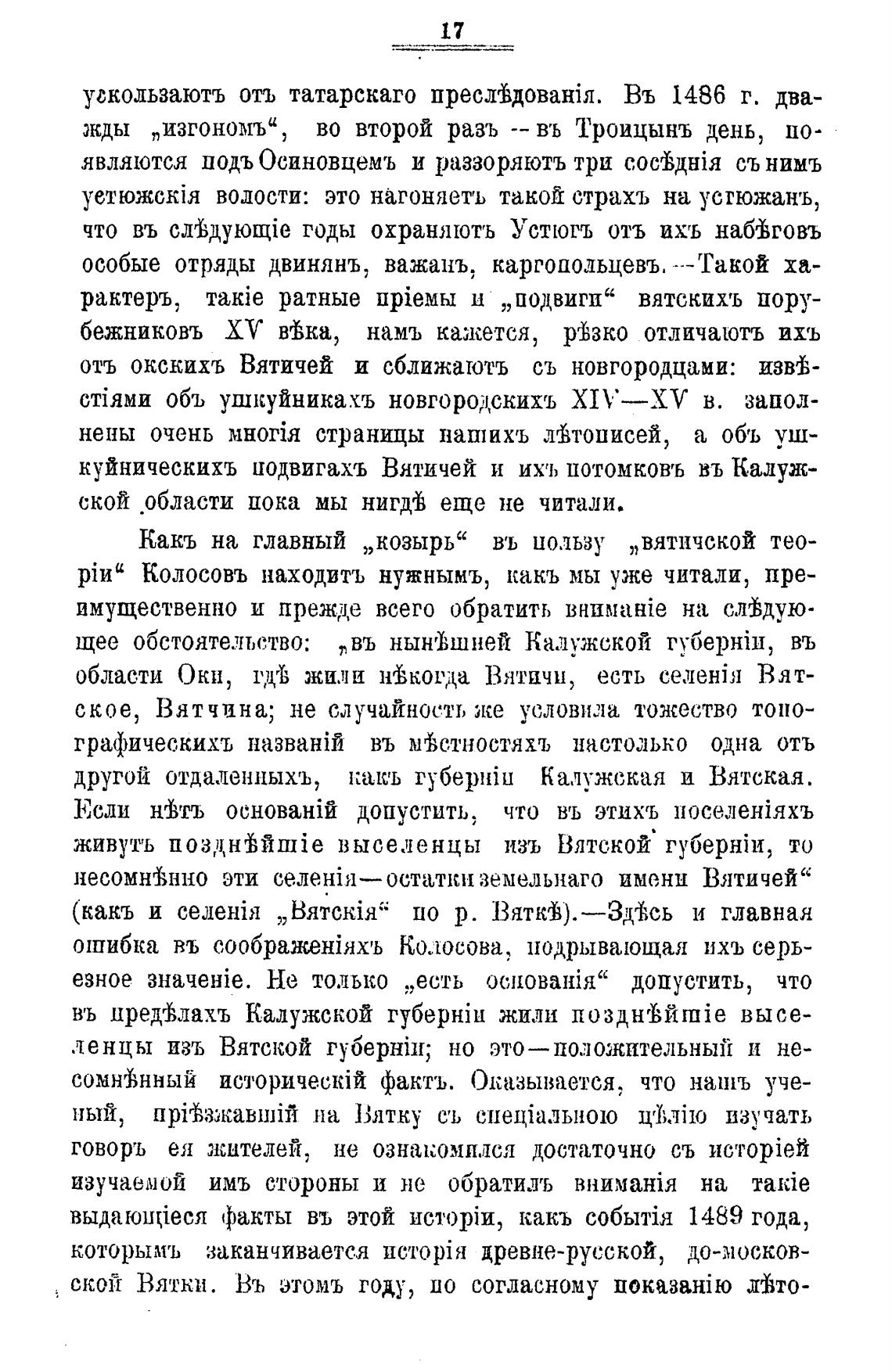 ское, Вятчина; не случайность же условила тожество топо-