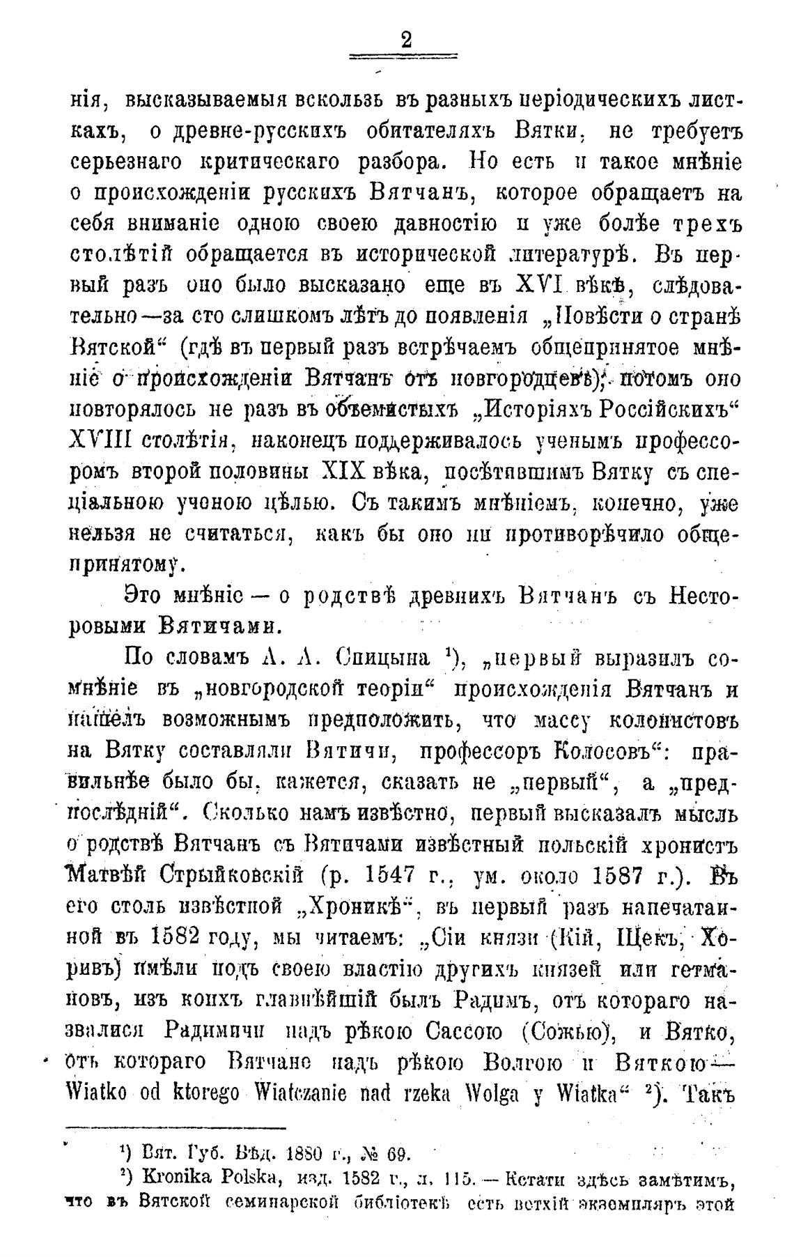 о родств% Вятчанъ съ Вятпчами изввстный польскйй хронпстъ