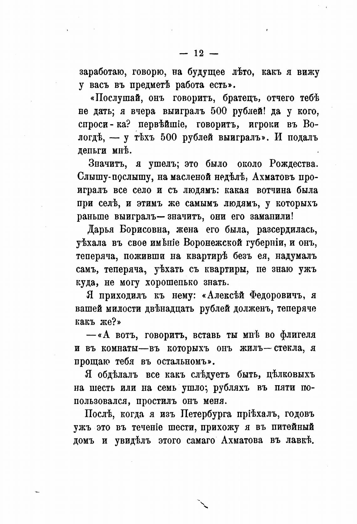 вашей милости дв'ђнадцать рублей долженъ, теперяче