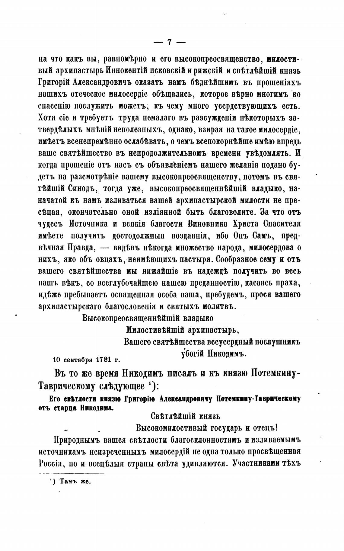 Въ то же время Никодимъ писалъ и кь князю Потемкину-