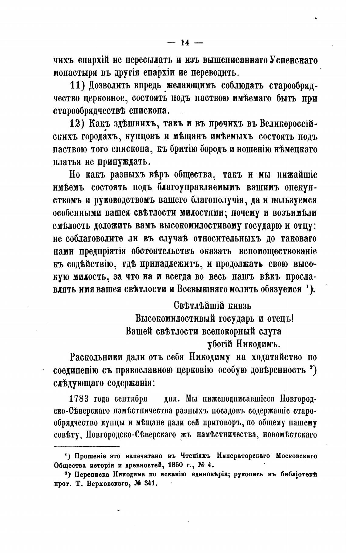 Раскольники дали отъ себя Никодиму на ходатайство по