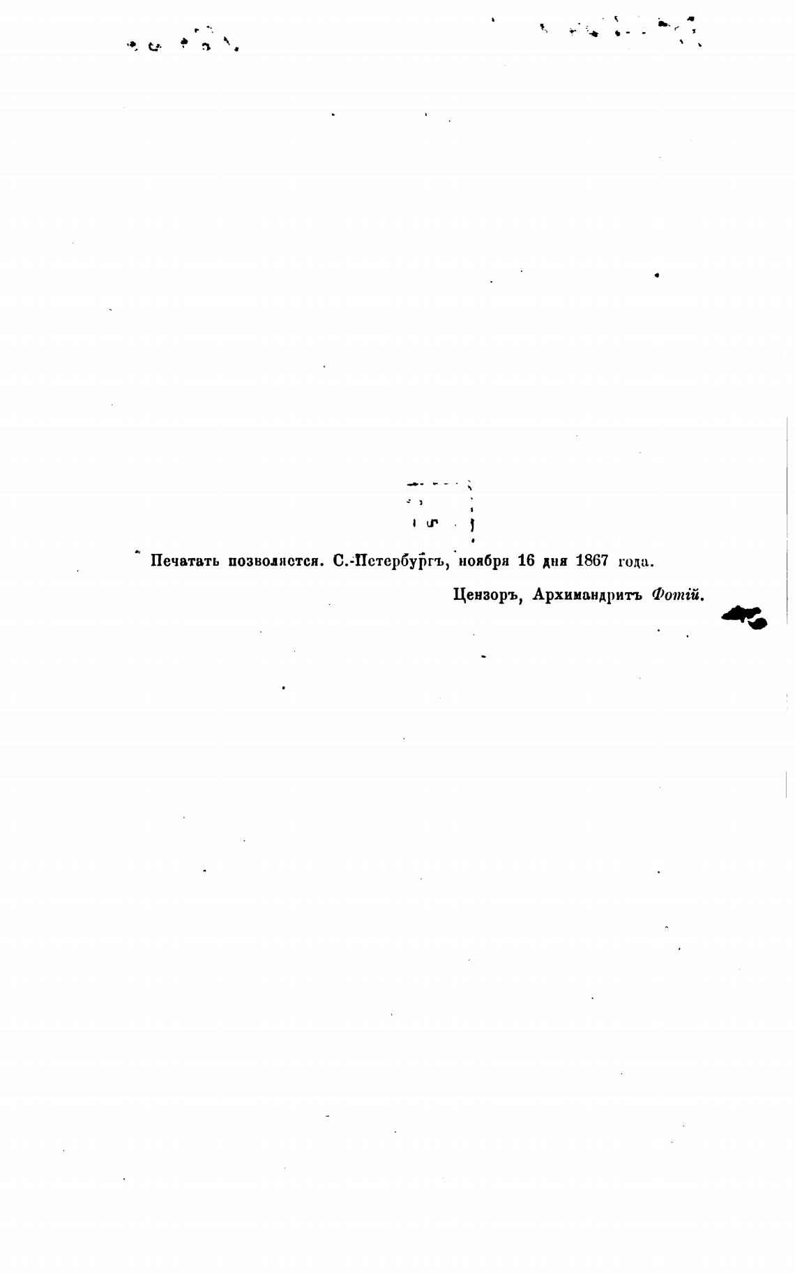 Печатать позволяется. С.-Пстербургъ, ноября 16 дни 1867 года.