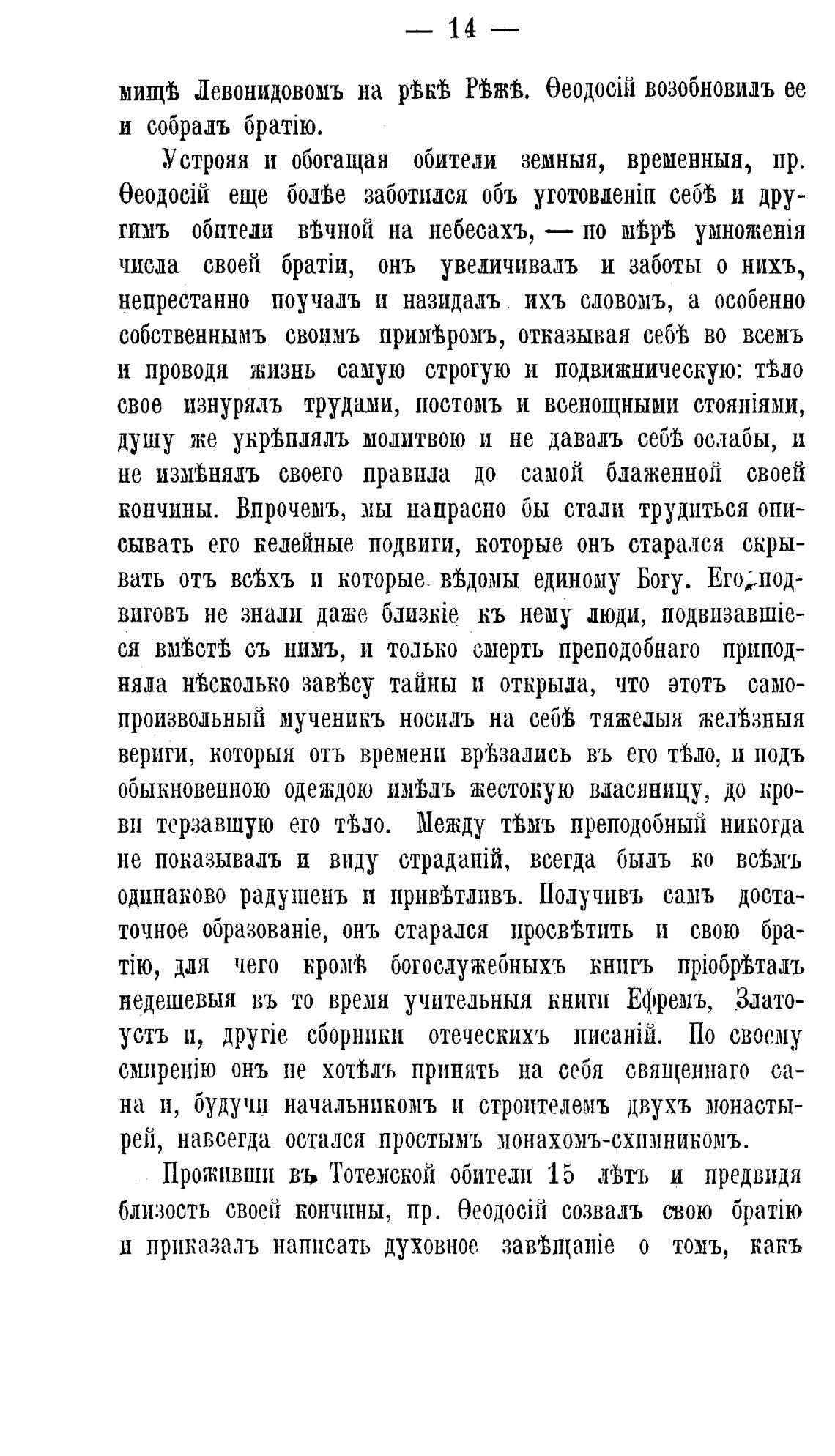 обыкновенною одеждою жестокую власяницу, до кро-