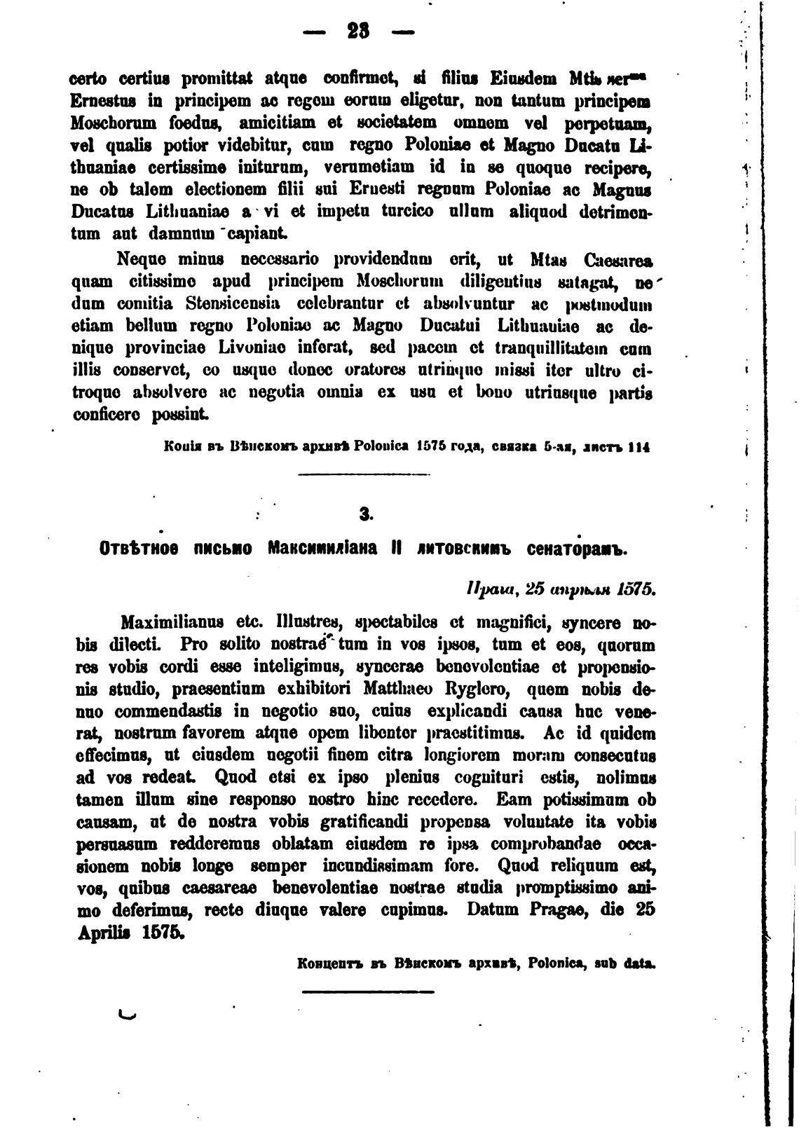 Отв%тное письио Максимилиана lI литовспи•ъ сенаториъ.