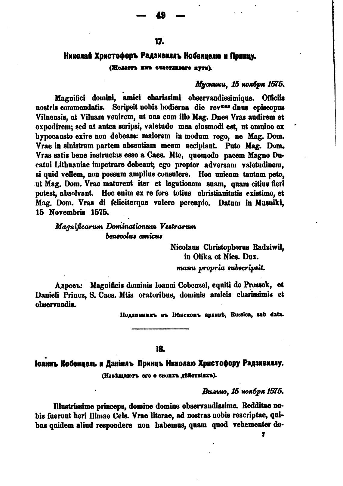 Иоаинъ Нобенцепь и Данюъ Принц» Ниволаш Христофору Радиввму.