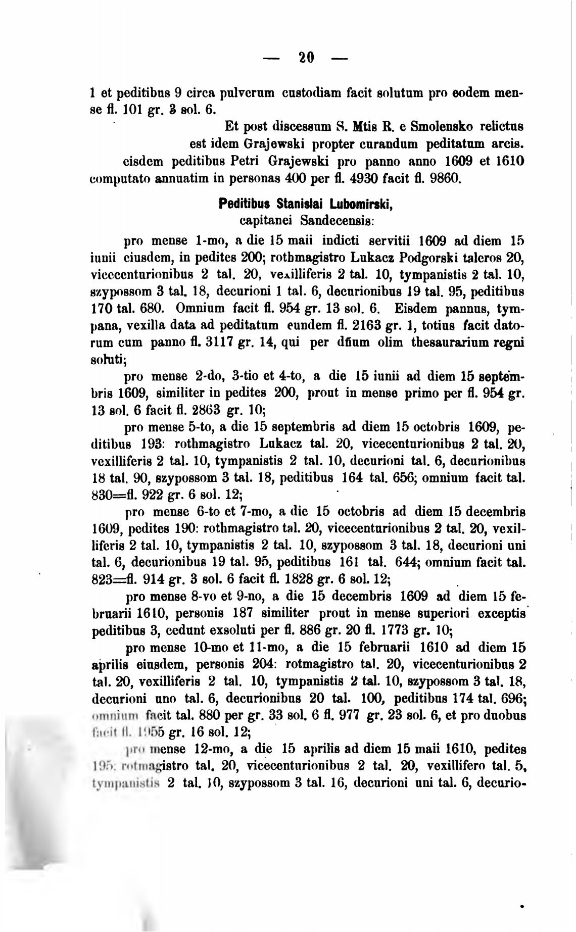 bris 1609, similiter in pedites Ш), prout in mense primo per Я. 954 gr.