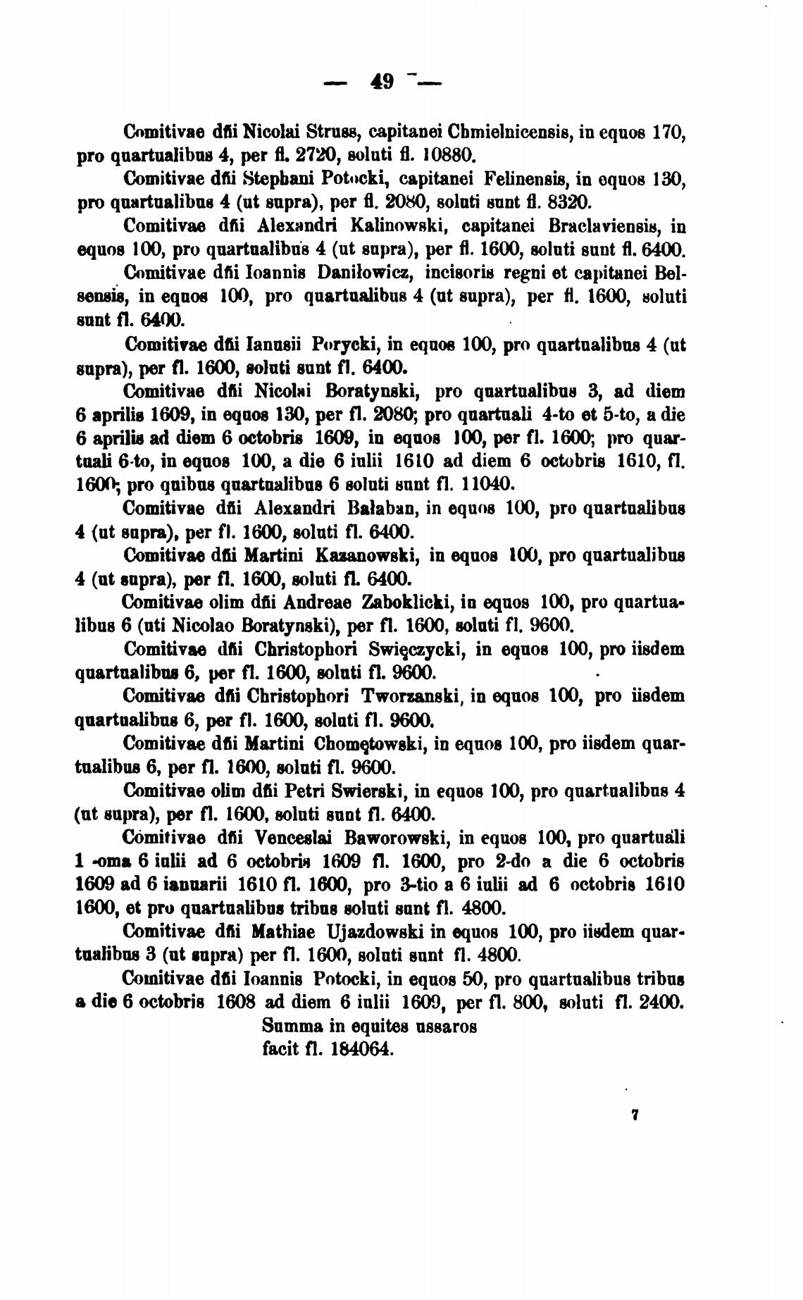 Comitivae d6i Nicolai Struss, c,apitanei Cbmielnicensis, in equos 170,