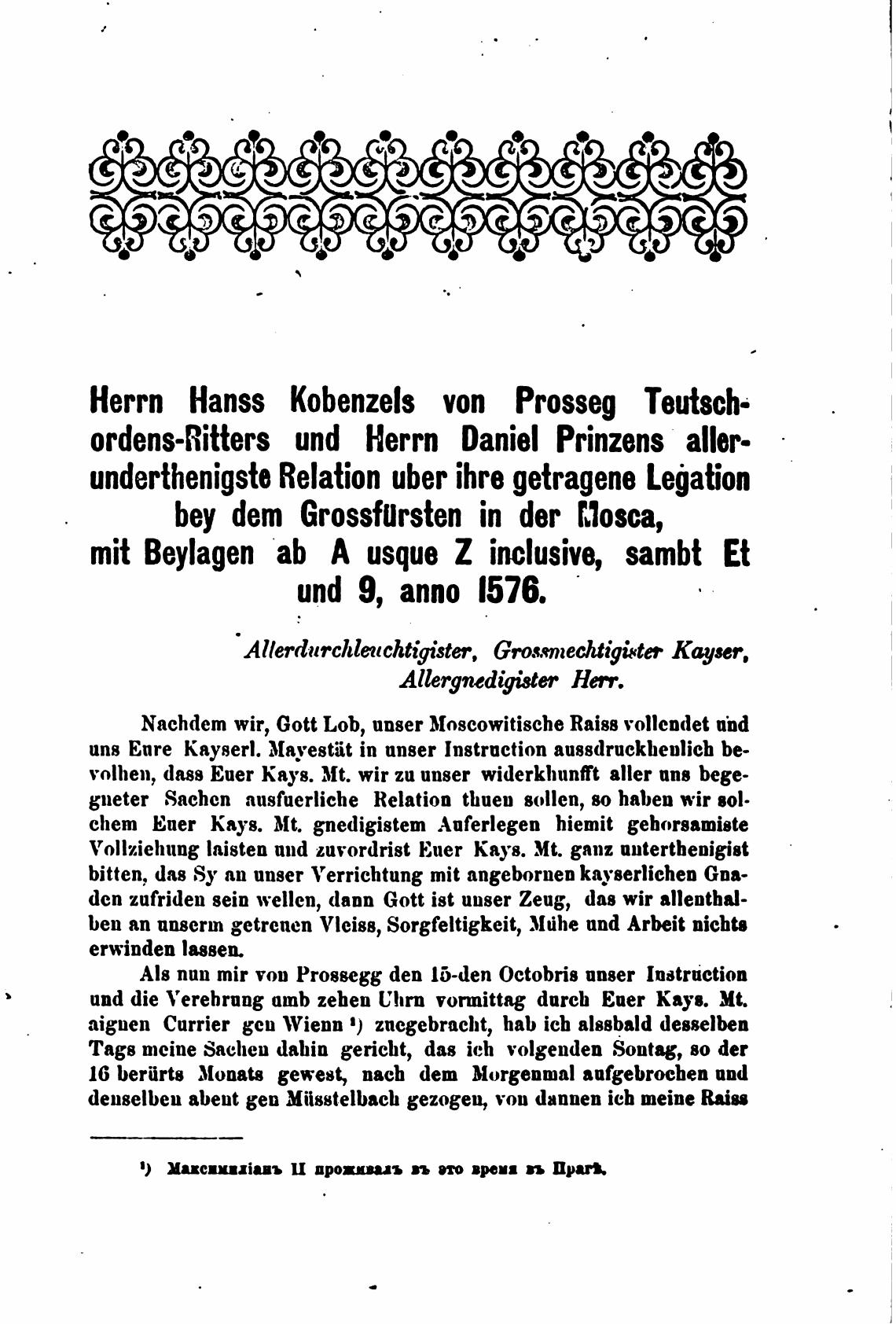 yolhen, dass Euer kays. Mt. wir zu unser widerkhunft aIler апв bege-