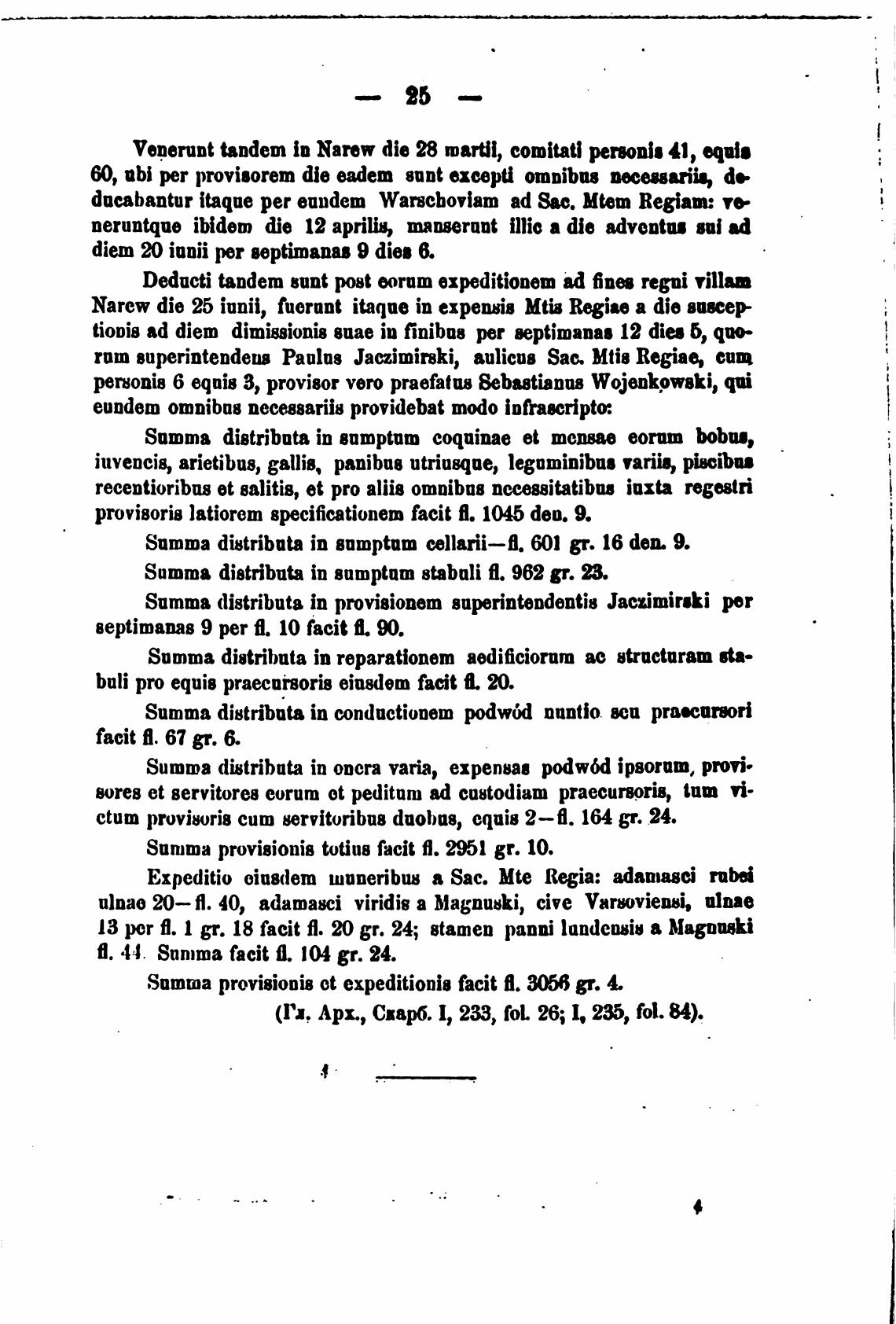Narew die 25 iunii, fuernnt itaque in expen8iB Mti8 Regiae а die вис.