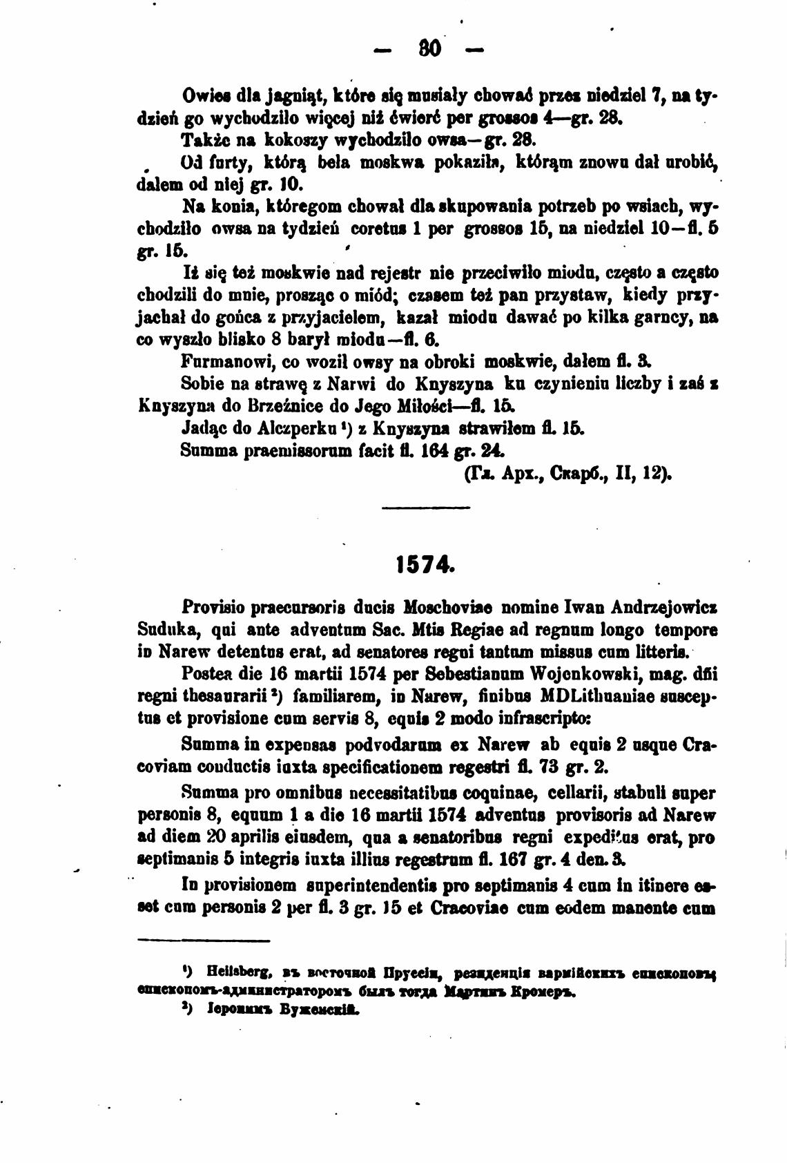 Frsonis 8, equum 1 а die 16 martii 1574 BdventBB provisoris ad Narew