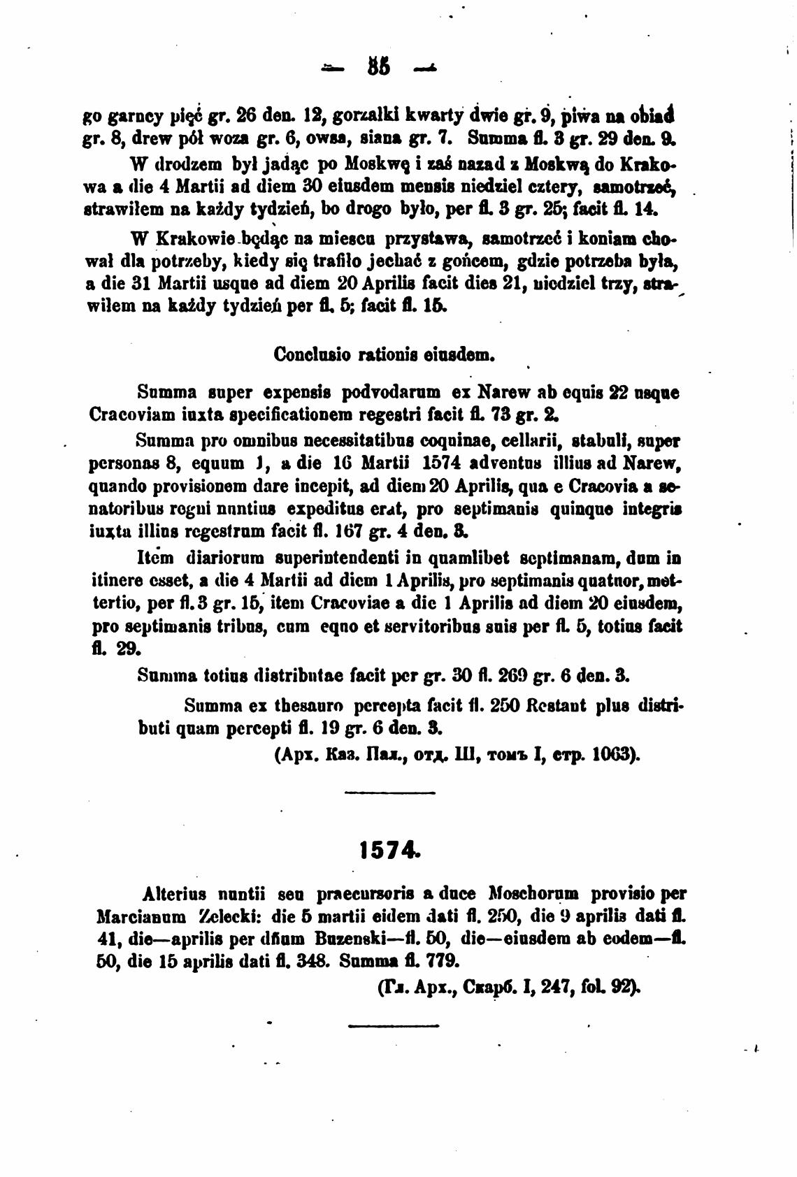 ревопш 8, equum 1, а die 16 Martii 1574 advent08 illius ad Narew,