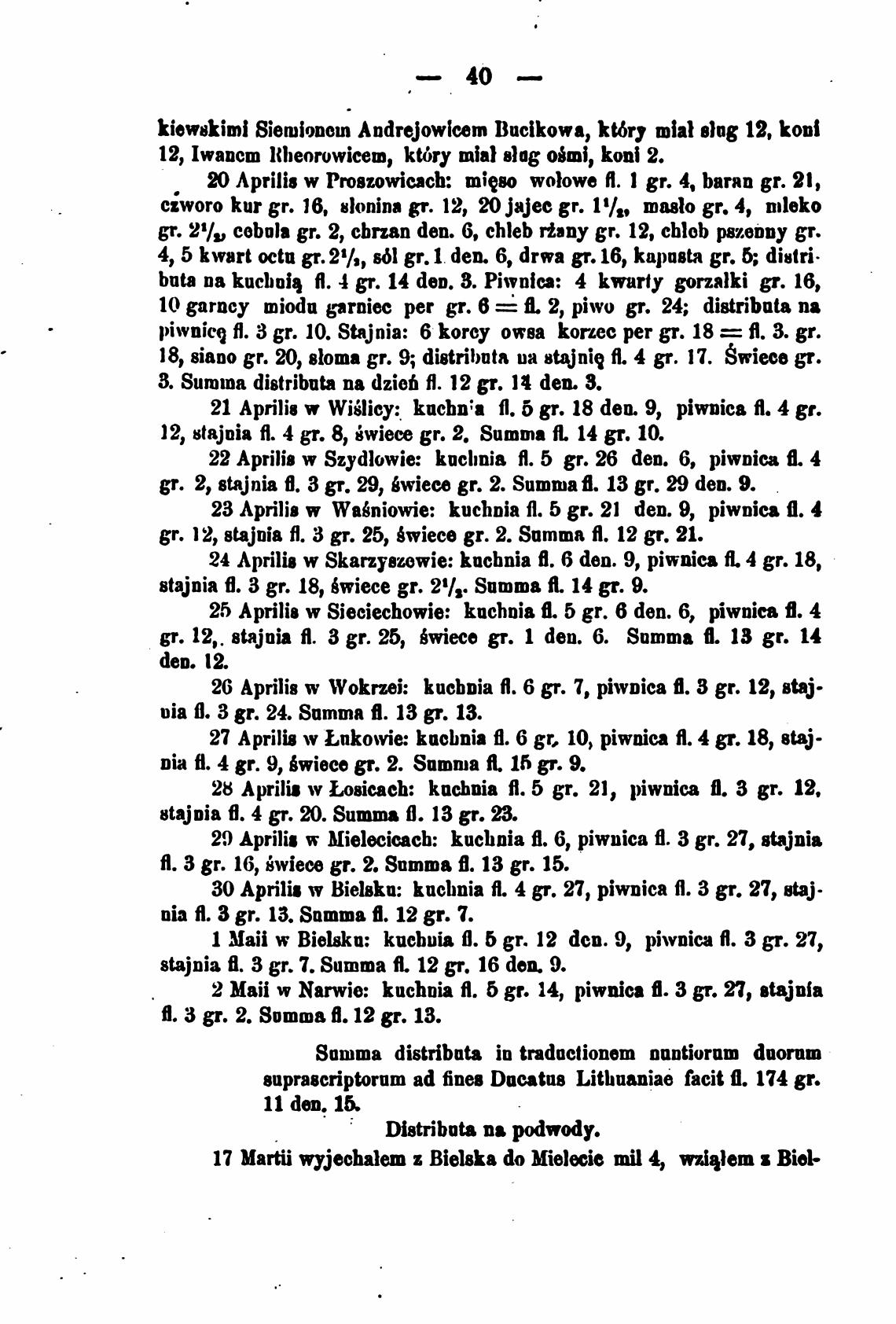 24 Aprilis w Skarzyszewie: knchnia В. 6 den. 9, piwniea Я. 4 gr. 18,