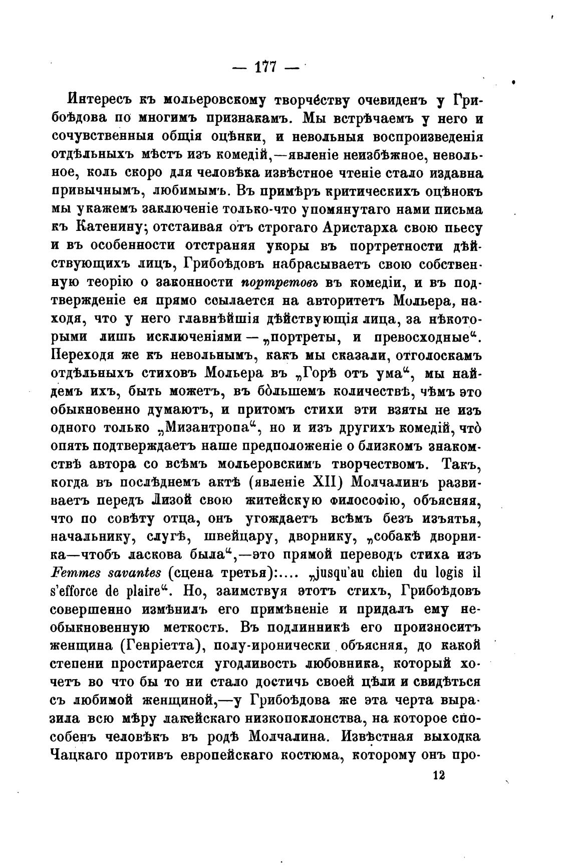 ея прямо ссылается на авторитетъ Мольера, на.