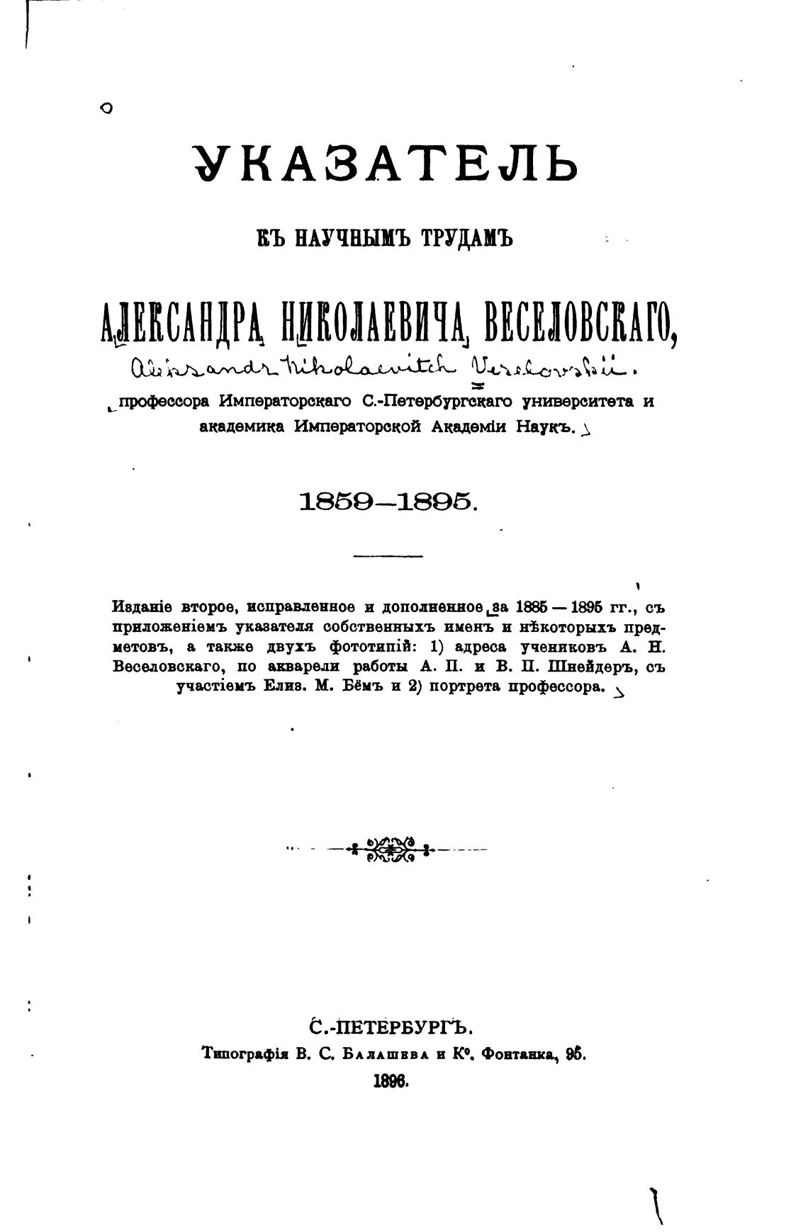 Весвдовскаго, по аоареди работы А. П. и В. П. Шнейдеръ, съ