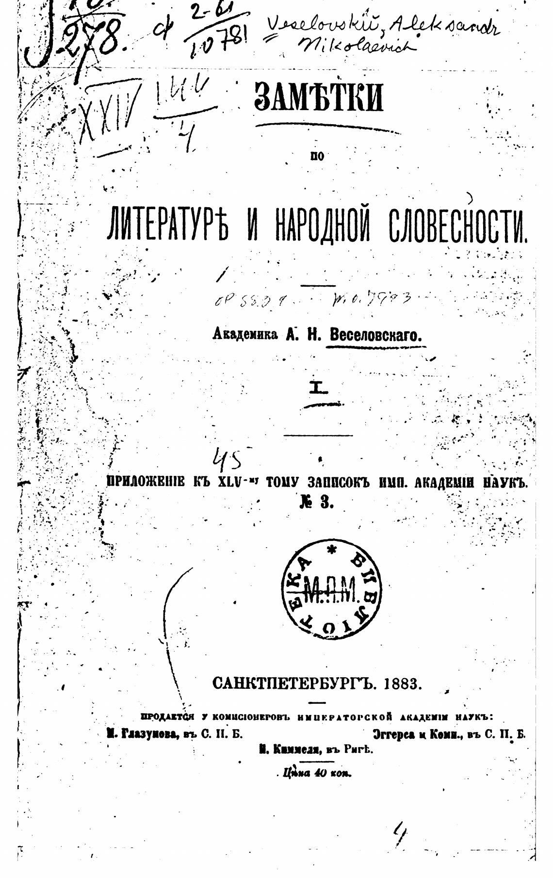Академика К. Н. Веселовскаго.