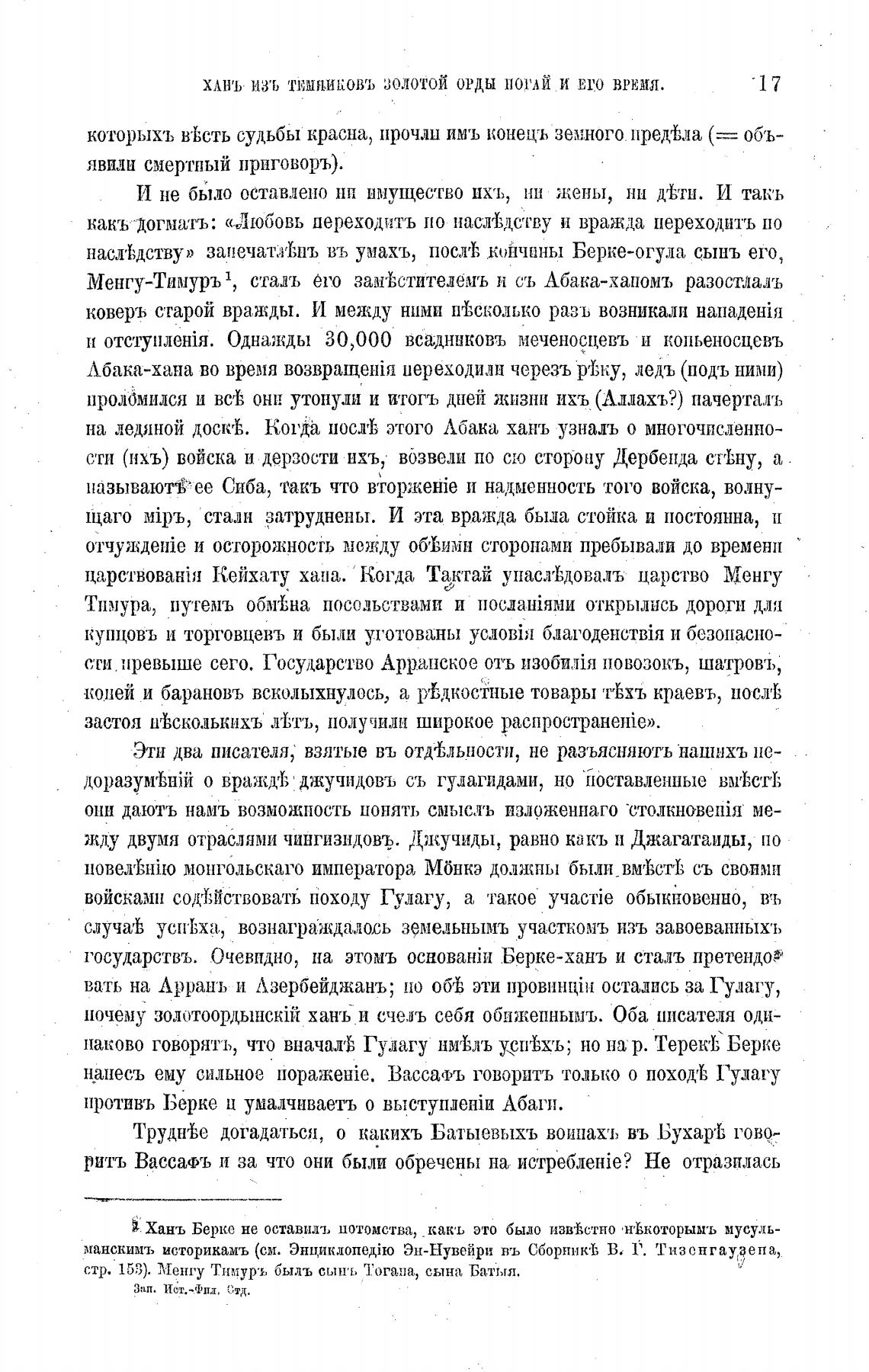 Хань Берке не оставилъ потомства, какъ это было извТстно •н•вкоторымъ мусуль-