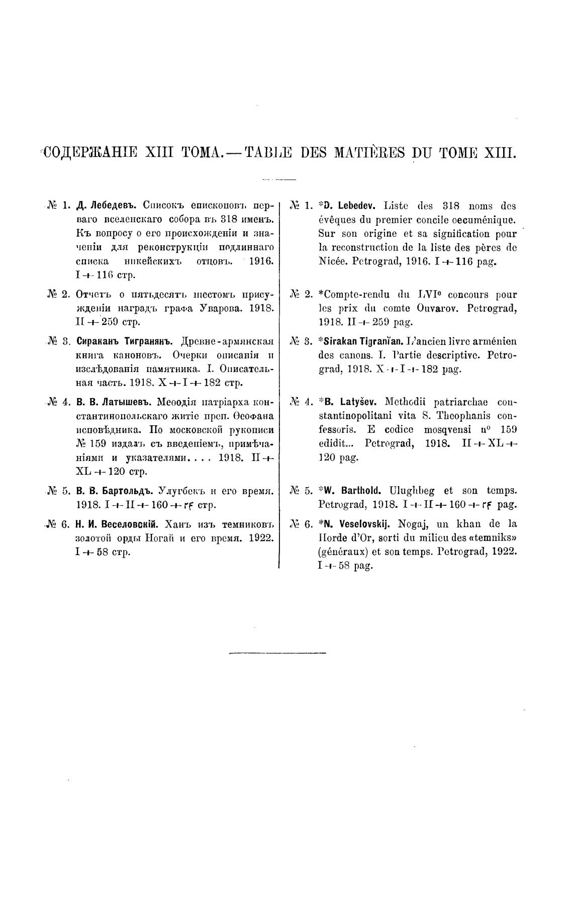 СОДЕРЖАНГЕ XIII DES MAT11)RES DU ТОМЕ ХТП.