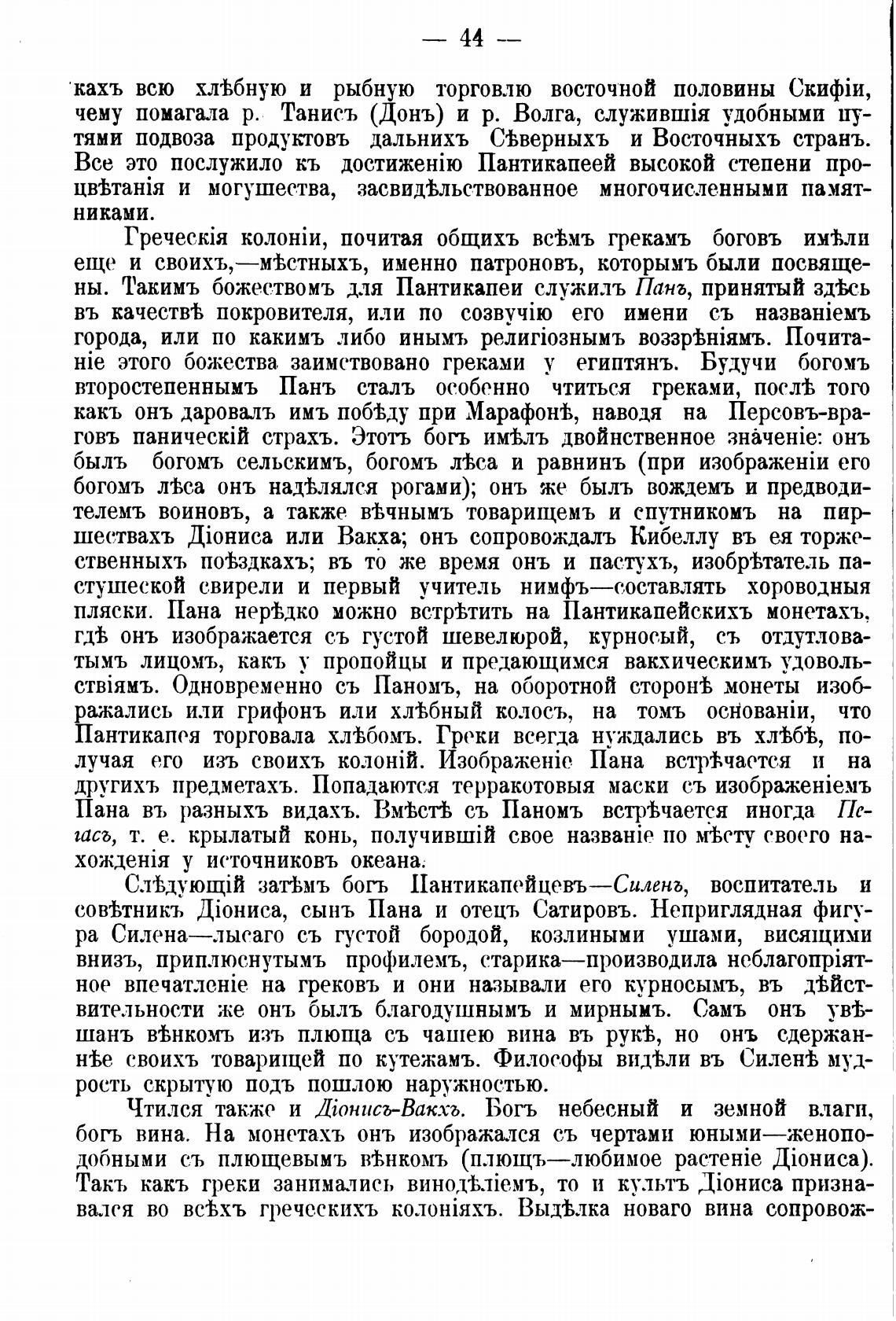 затЬмъ богь Пантикапейцевъ—Силенъ, воспитатель и