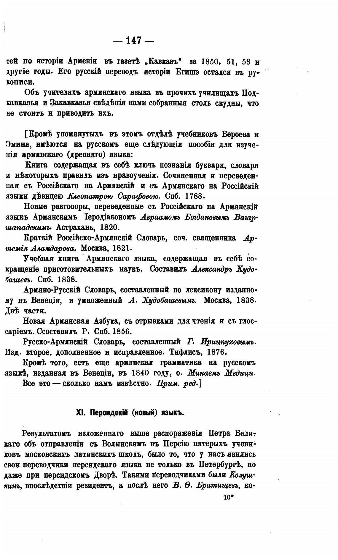 Обь учителахъ армянсваго языка въ прочихъ училищахъ Под-