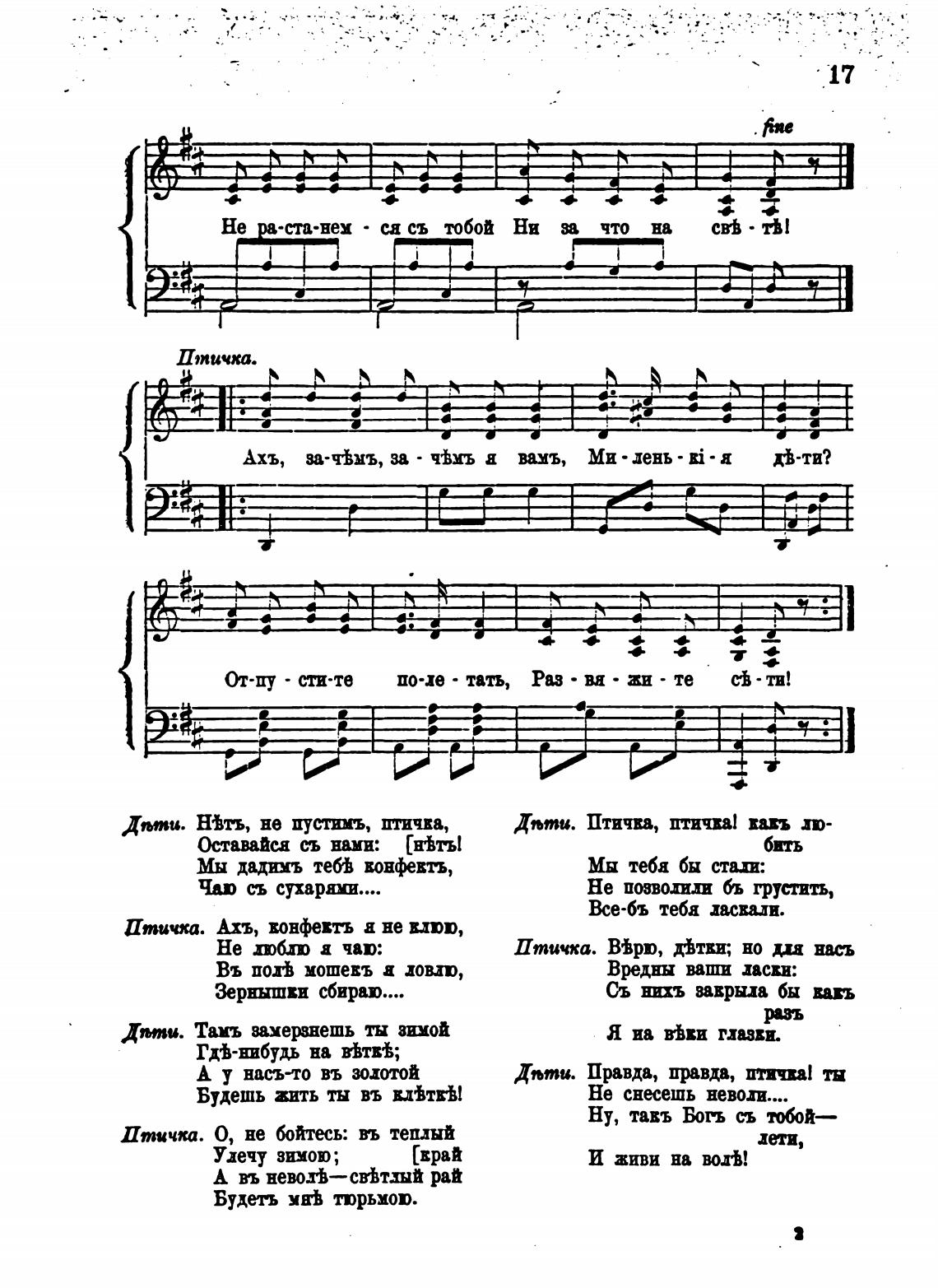 Птичка. О, не бойтесь: въ теплый