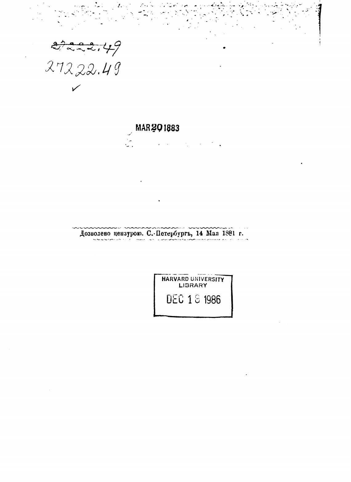 Дозволено цензурою. С.•Петербургь, 14 Мал