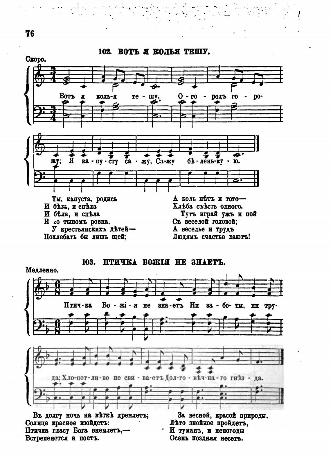 Птич•ва Бо - zi-a не вна-етъ Ни за - 60- ты, тру-