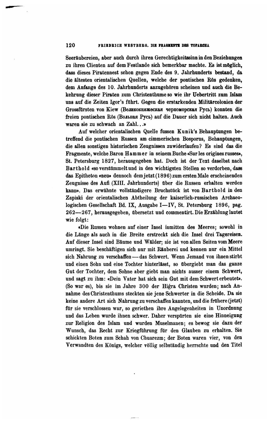 Fragmente, welche Baron Hammer in seinem Buche aSur les origines russes»,