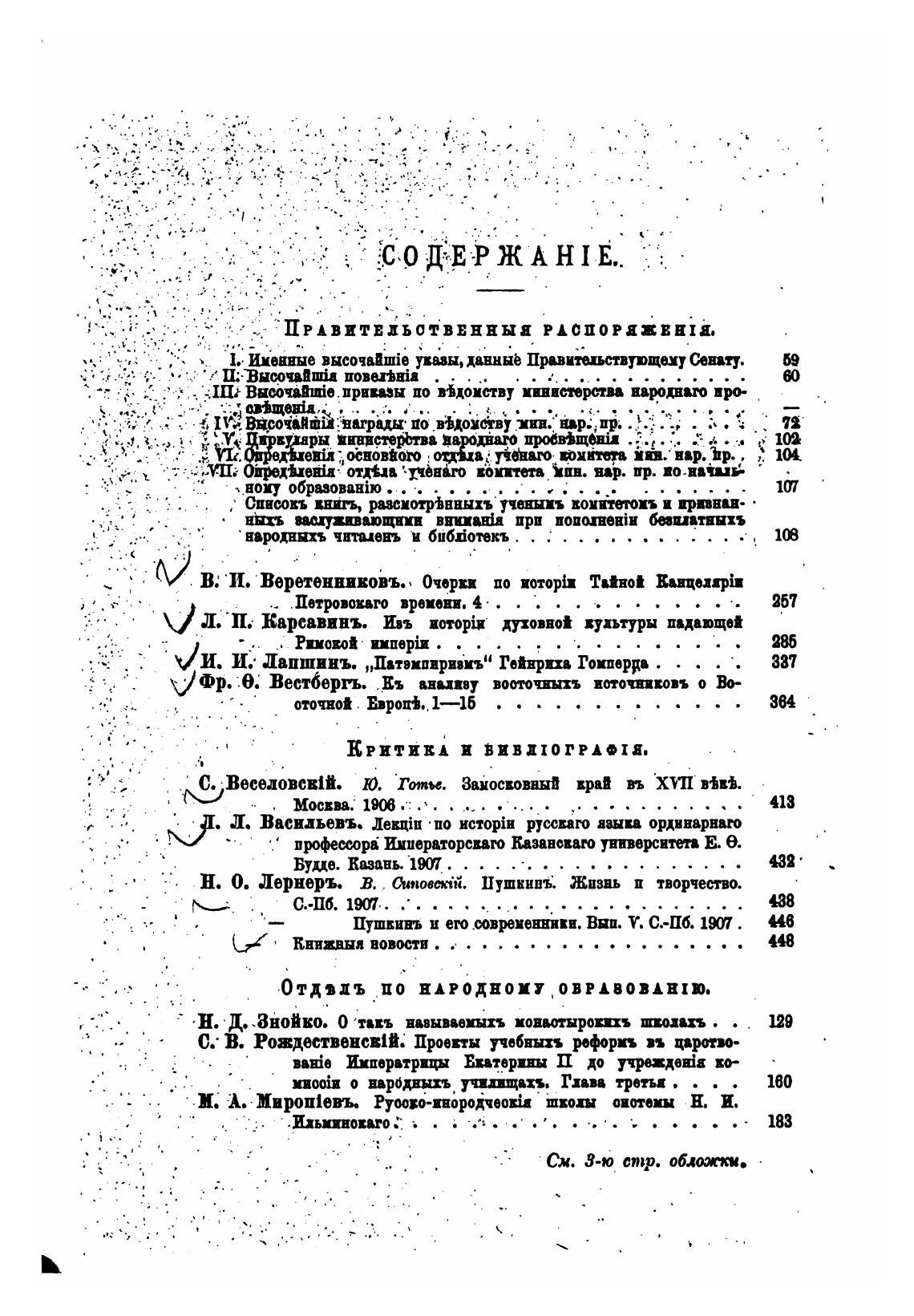 Списовъ внињ, разсиотрТвиыхъ учежып воии*тоМъ и ирпвац•