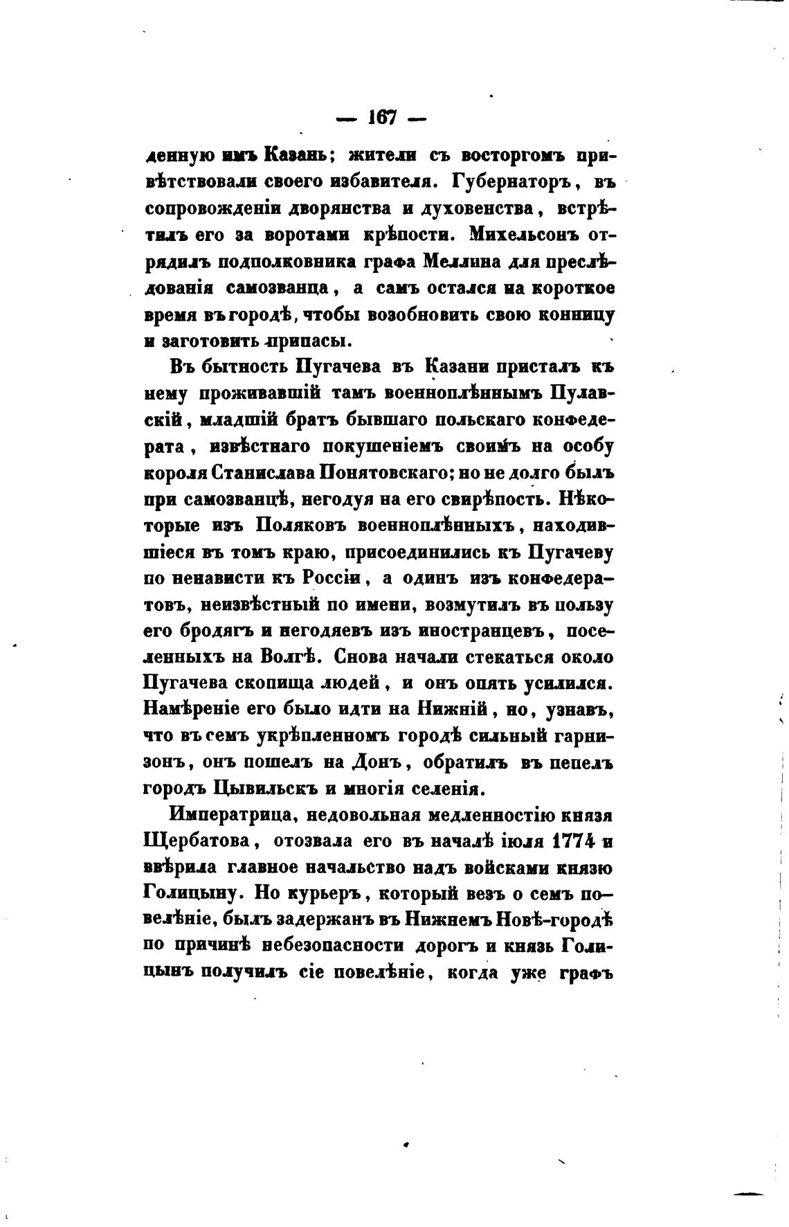 Въ бытность Пугачева въ Казани присталь кь
