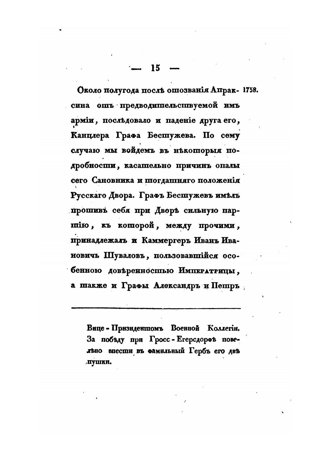 Русскаго Двора. Гра•ъ Бесшужевъ им%лъ