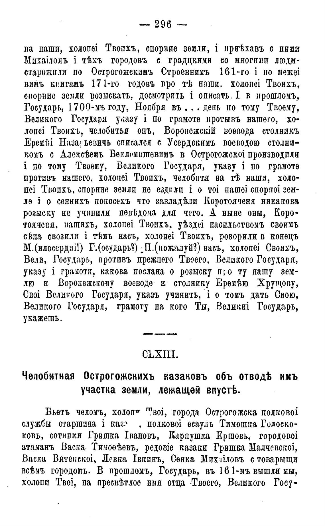 Бьетъ челомъ, холопв m.B0i, города Острогожска 110-Tk0B0i