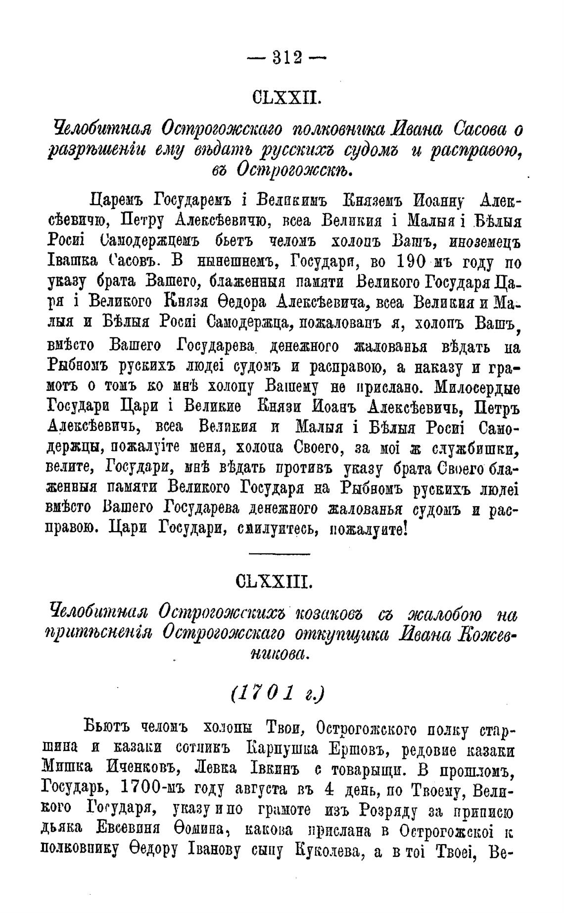 Бьютъ челом•ь холодн Твои, Острогожского полку стар-
