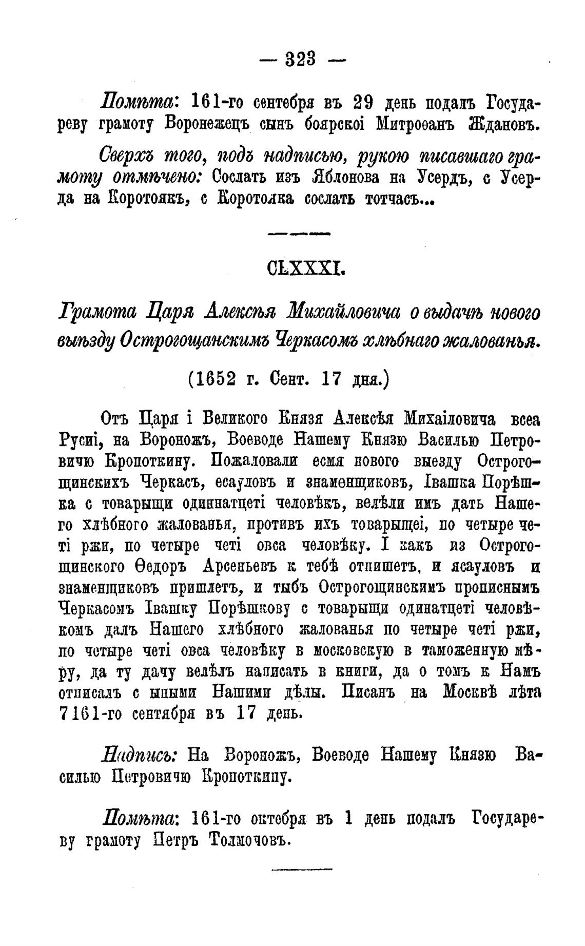 выљзДу Острогощанскилљ Черкасомб тлљбнаго жалованья.