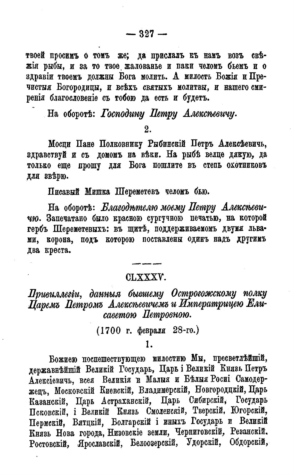 Мосци Пане Полковнику Петръ АдевсЈевичь,