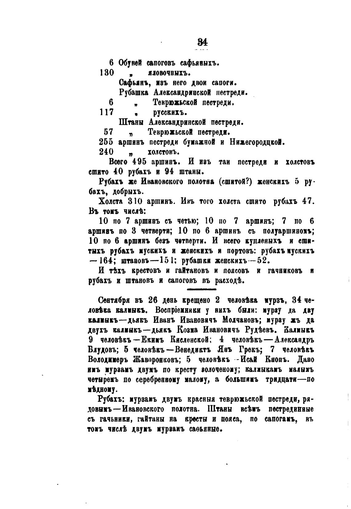 рубахъ и штановъ и сапоговъ въ расход%.