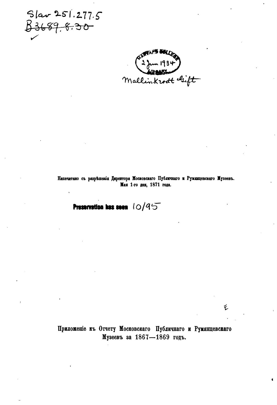 upuozeaie Отчету Московскаго Публичнато и Румянцевспго