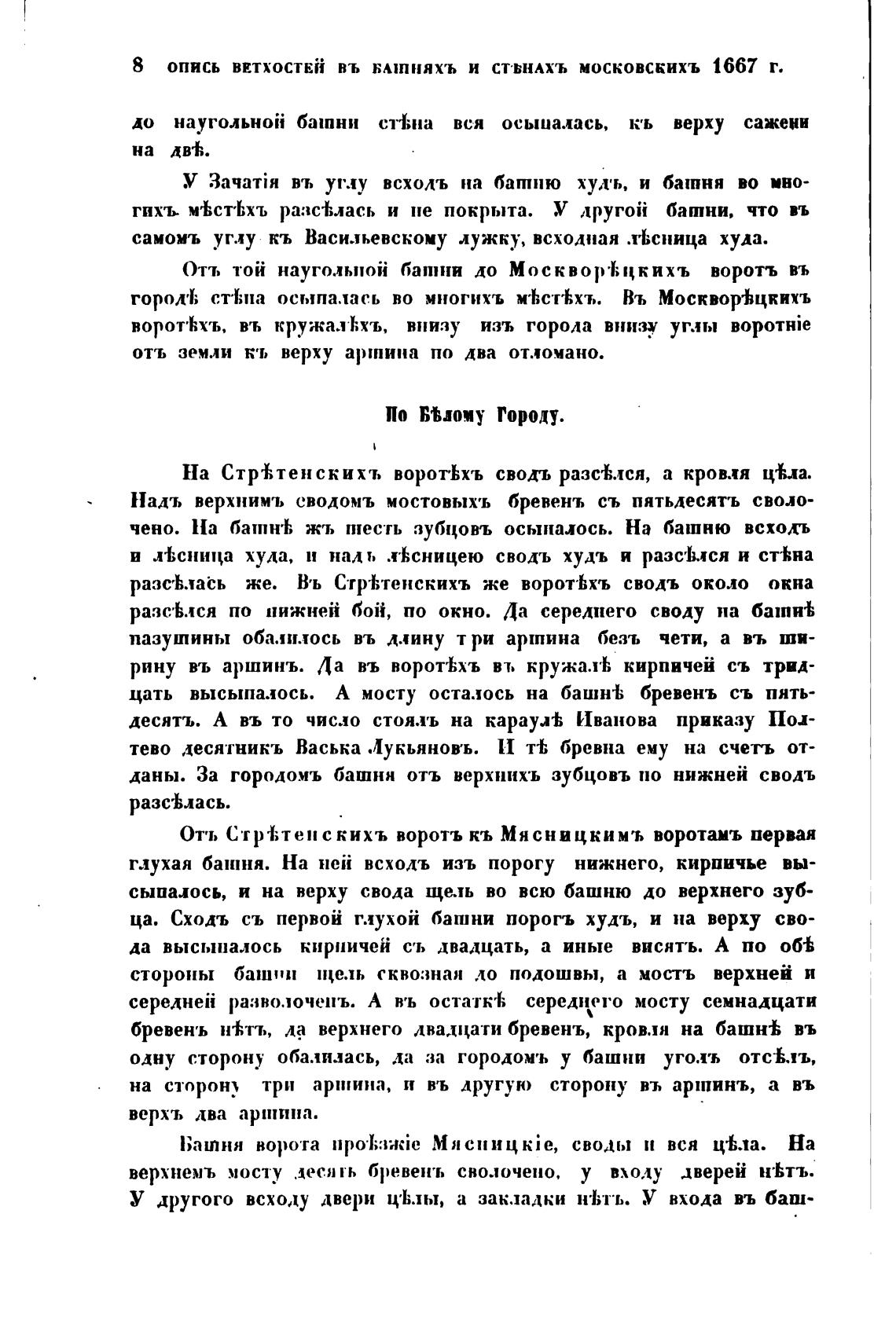 8 опись ВЕтхостЕй въ БАТняхъ и СТ•ЬНАХЪ московскихъ 1667 г.