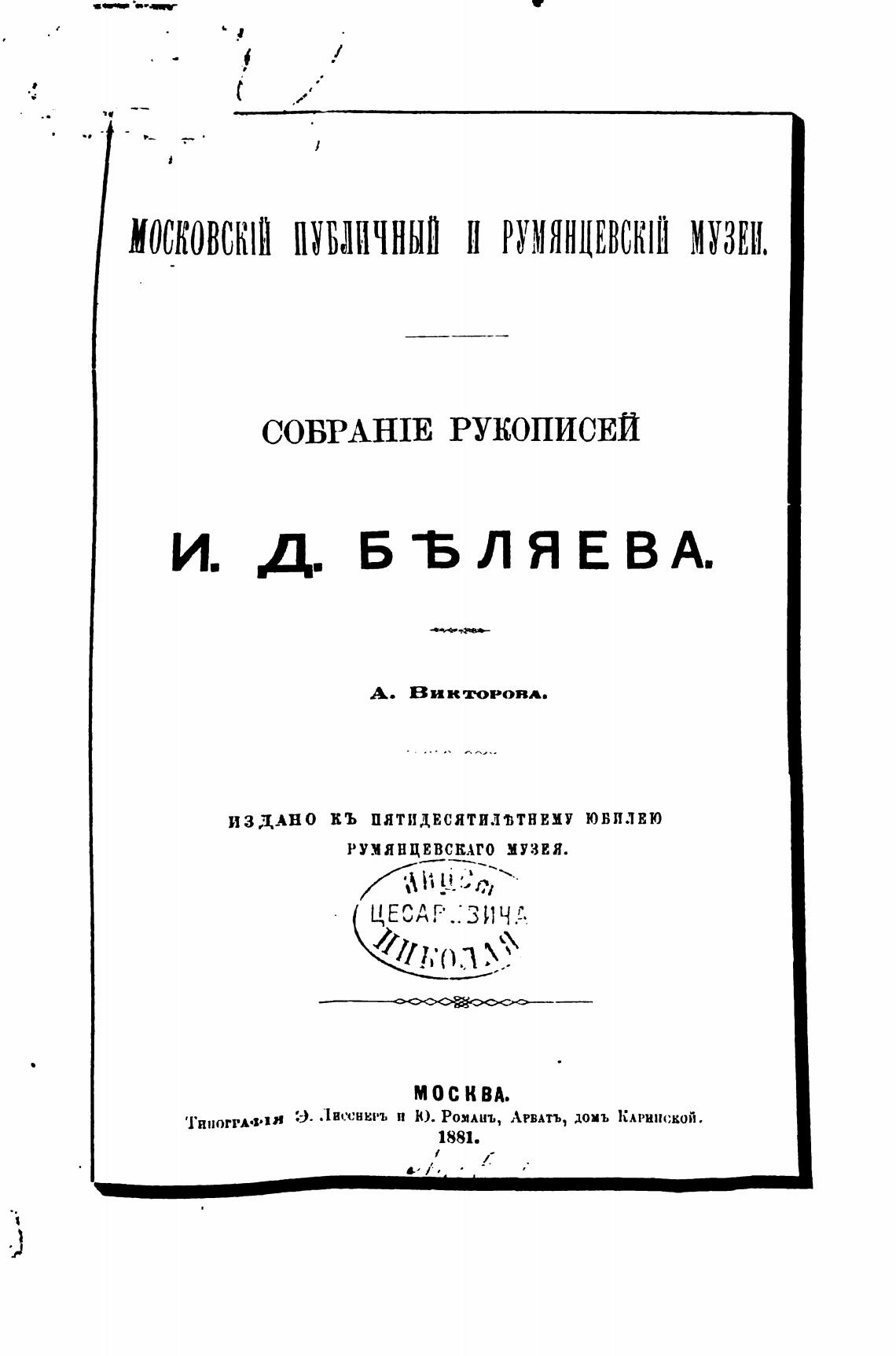РУМЯНЦЕВСЕАГО МУЗЕЯ.