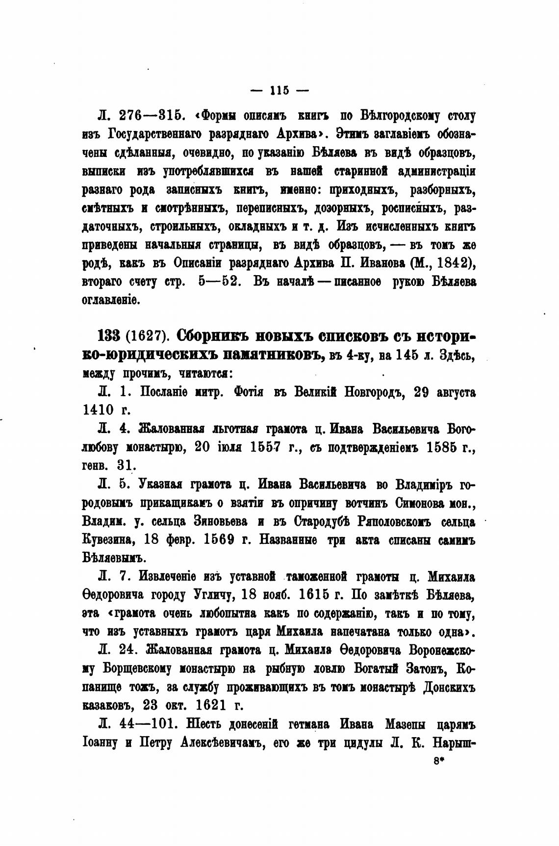 133 (1627). Сборнивъ новыхъ списвовъ съ истори-